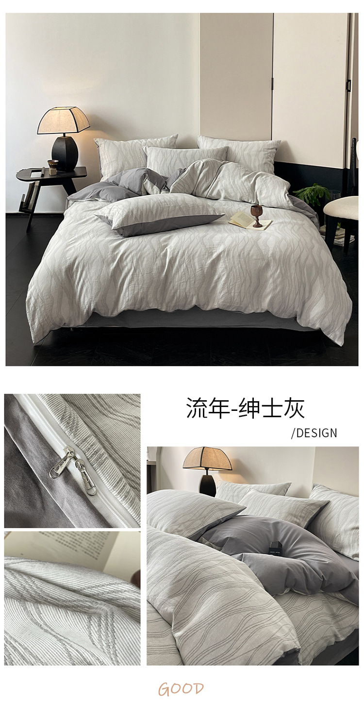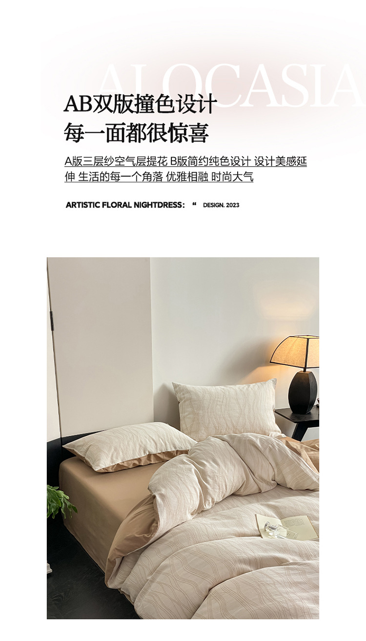 【流年款-40支A类三层纱提花四件套】40sA类全棉水洗绵三层纱提花四件套柔软透气床品件套