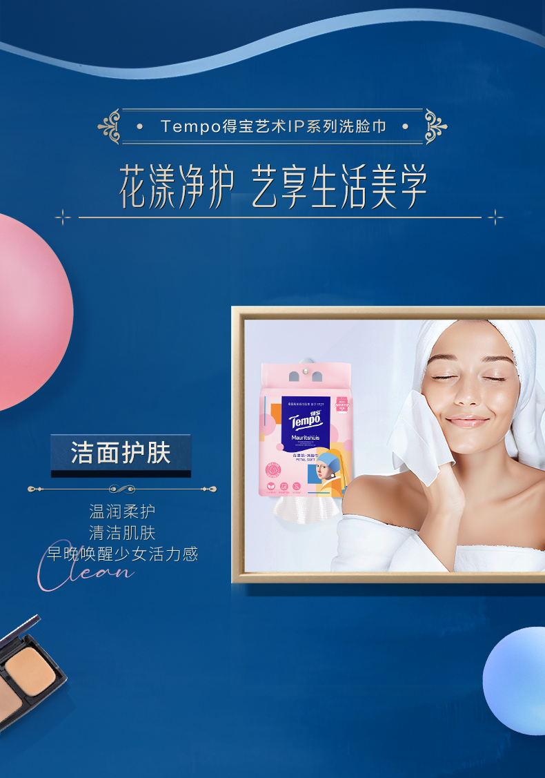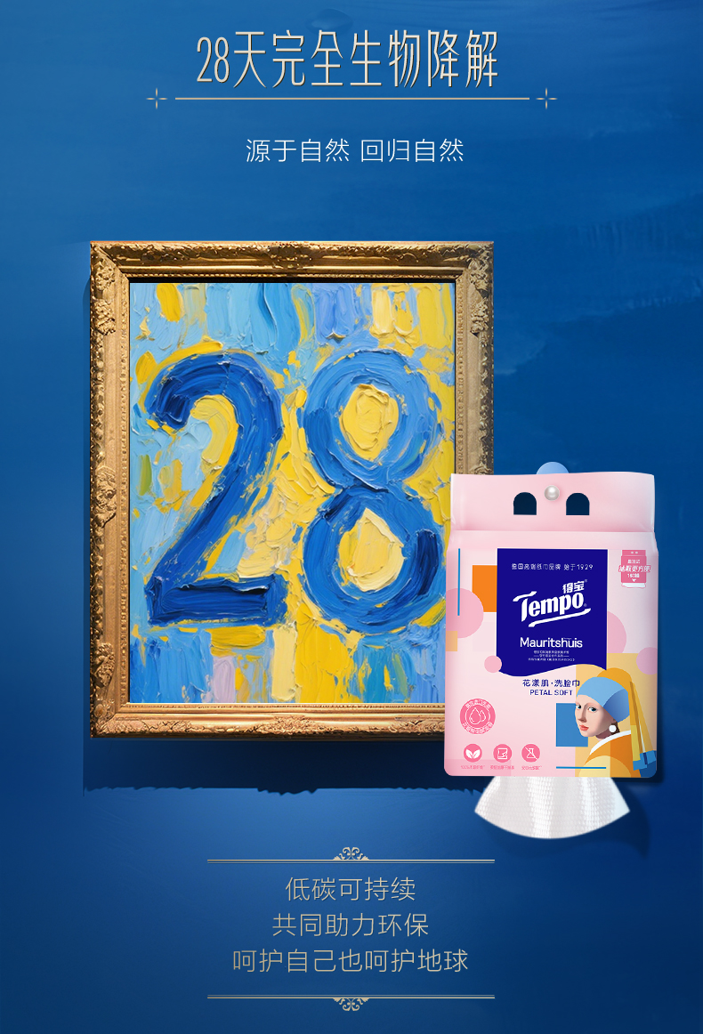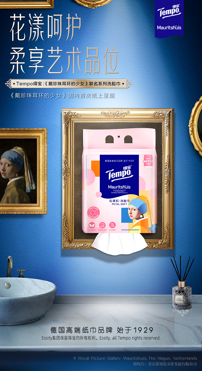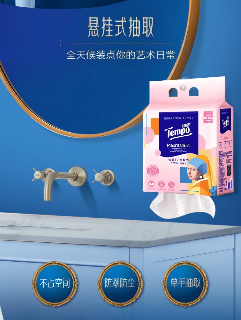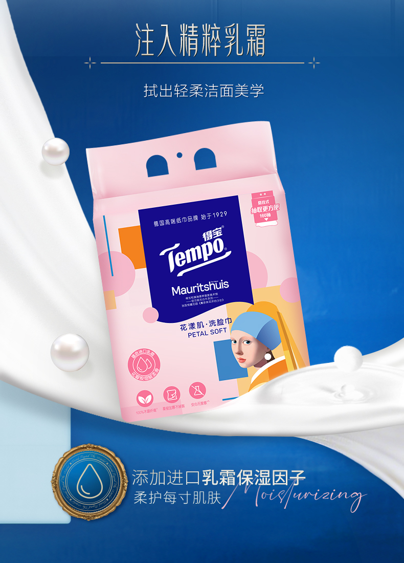 得宝|《戴珍珠耳环的少女》联名 花漾肌 洗脸巾160抽/包 厚实亲肤不掉屑洗脸巾 大规格 悬挂随心抽