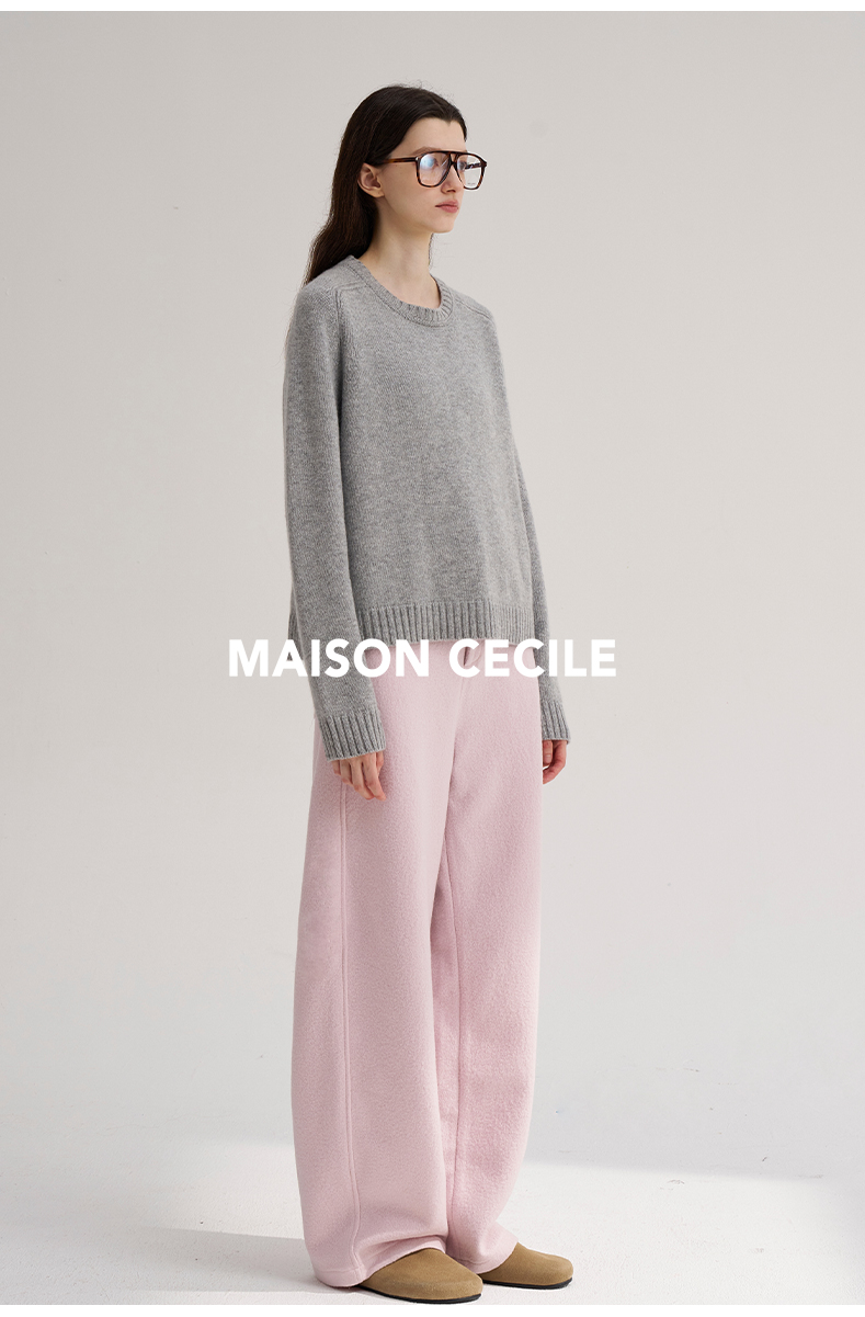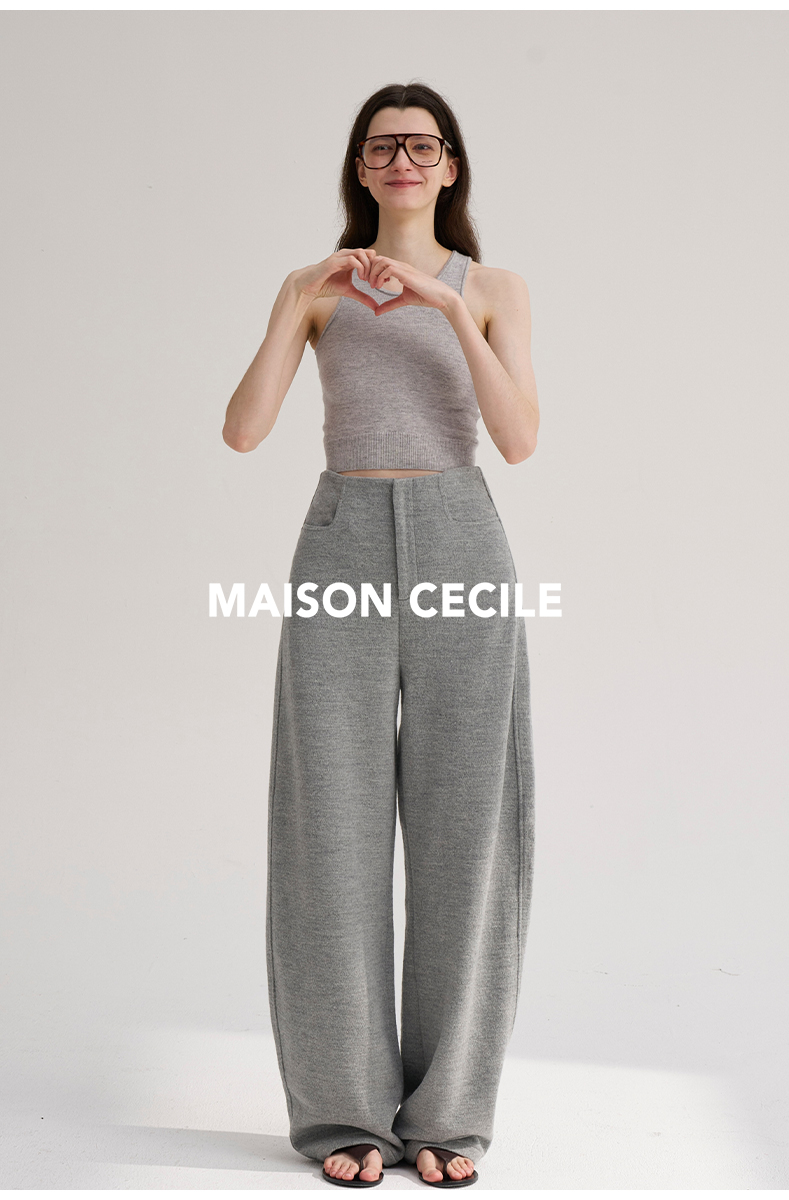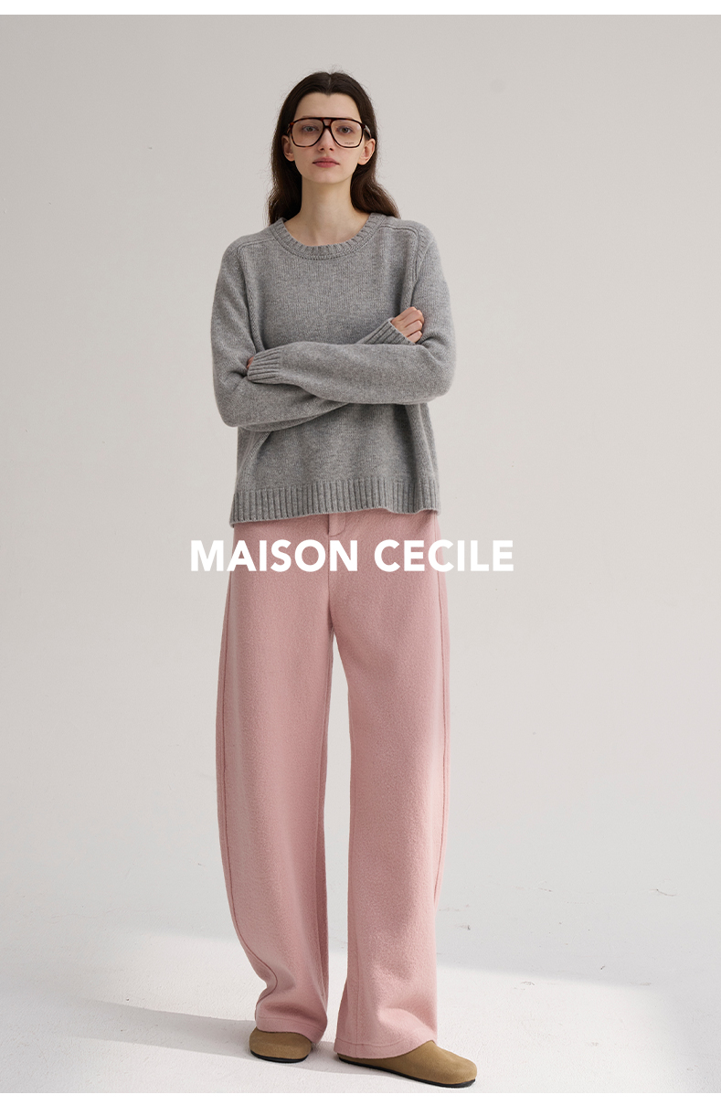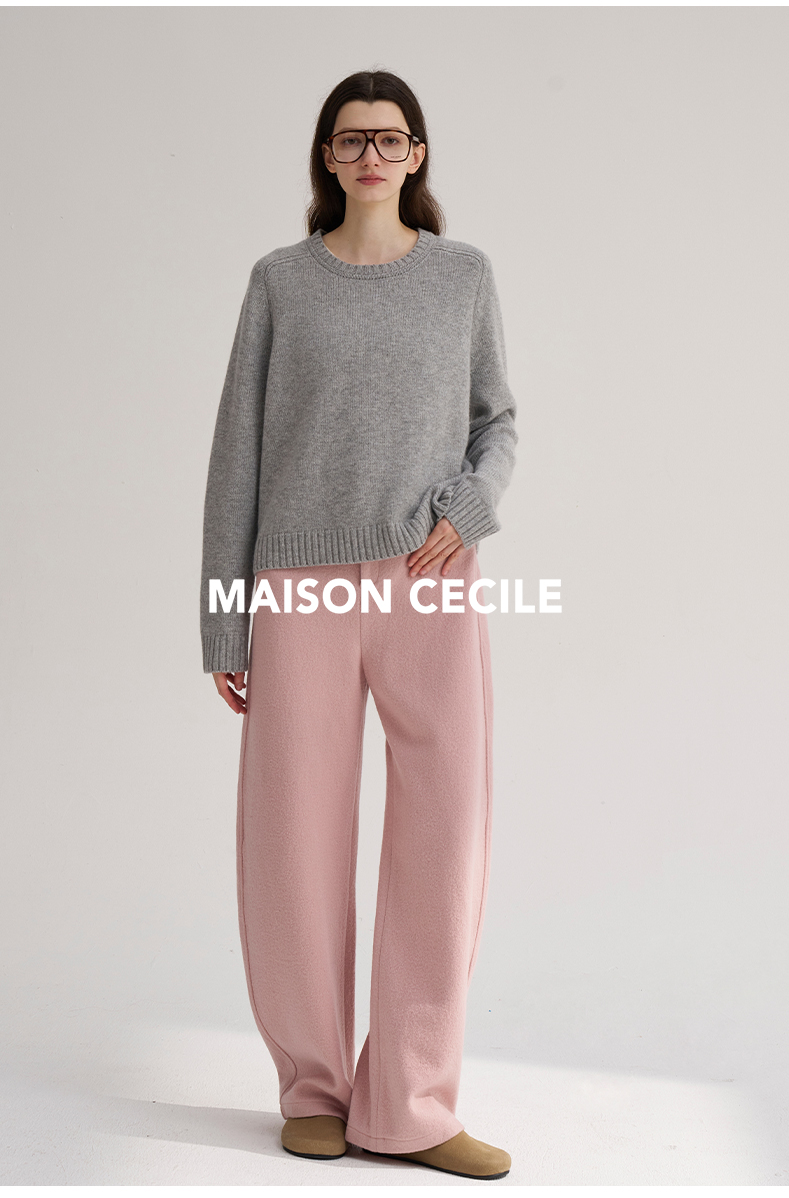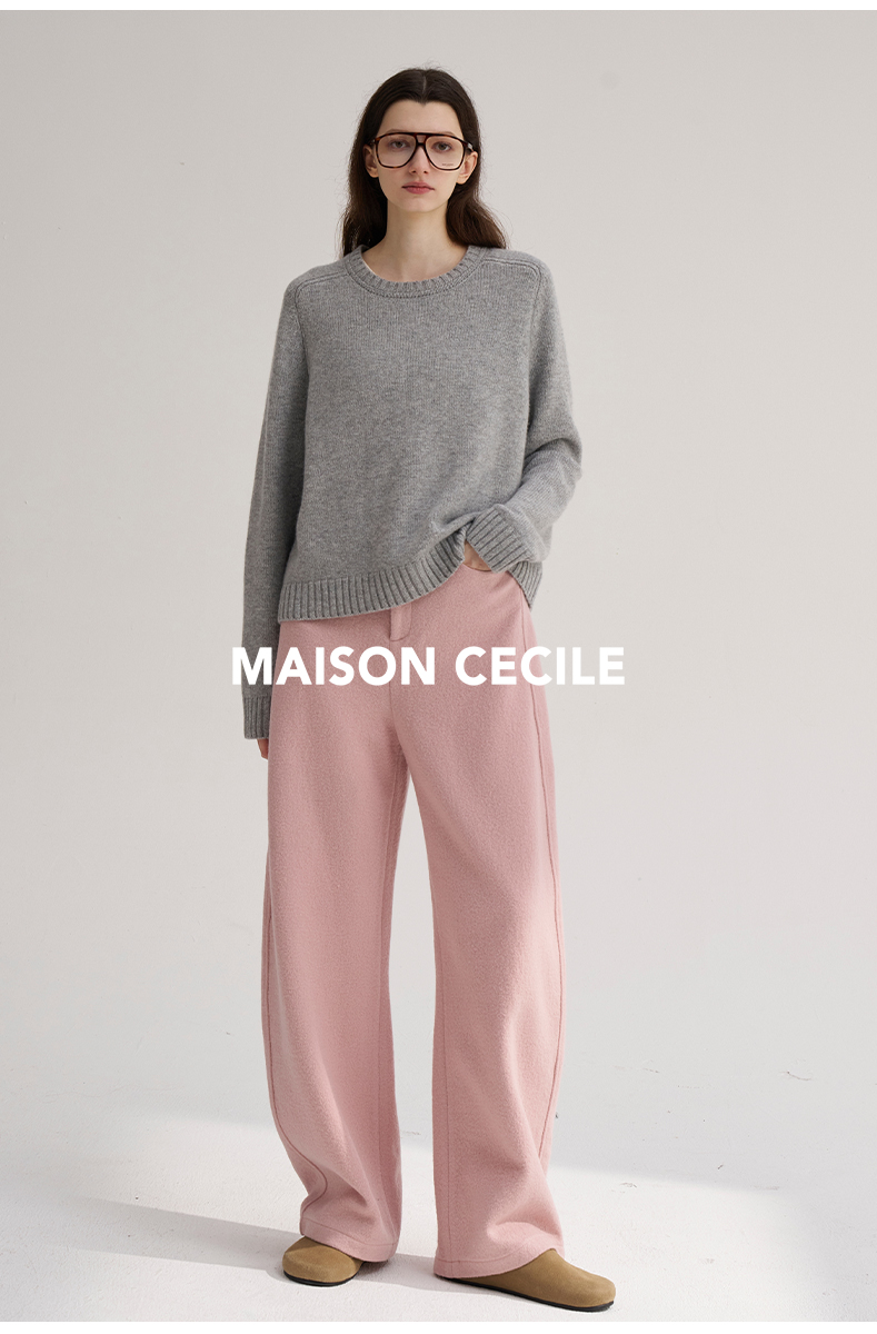MAISON CECILE冬日6色/圈圈全羊毛保暖厚实修饰腿型镰刀弧形裤