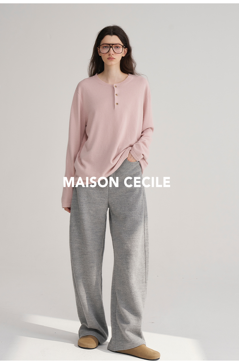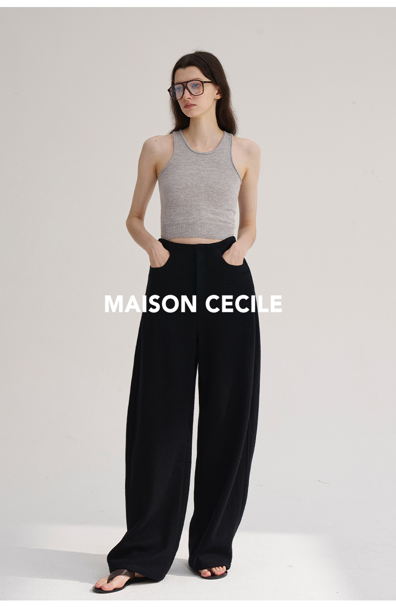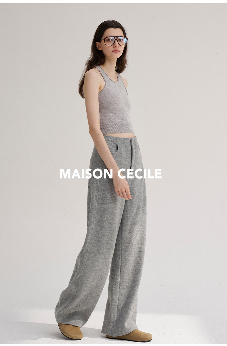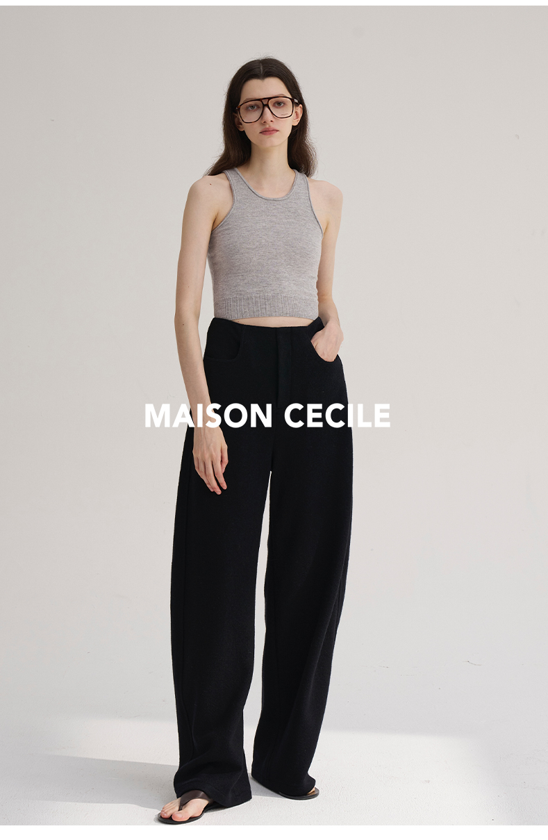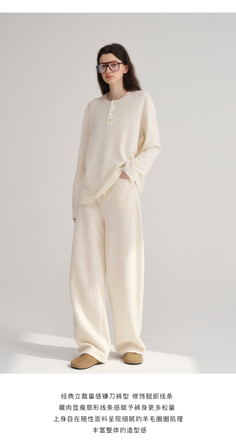 MAISON CECILE冬日6色/圈圈全羊毛保暖厚实修饰腿型镰刀弧形裤
