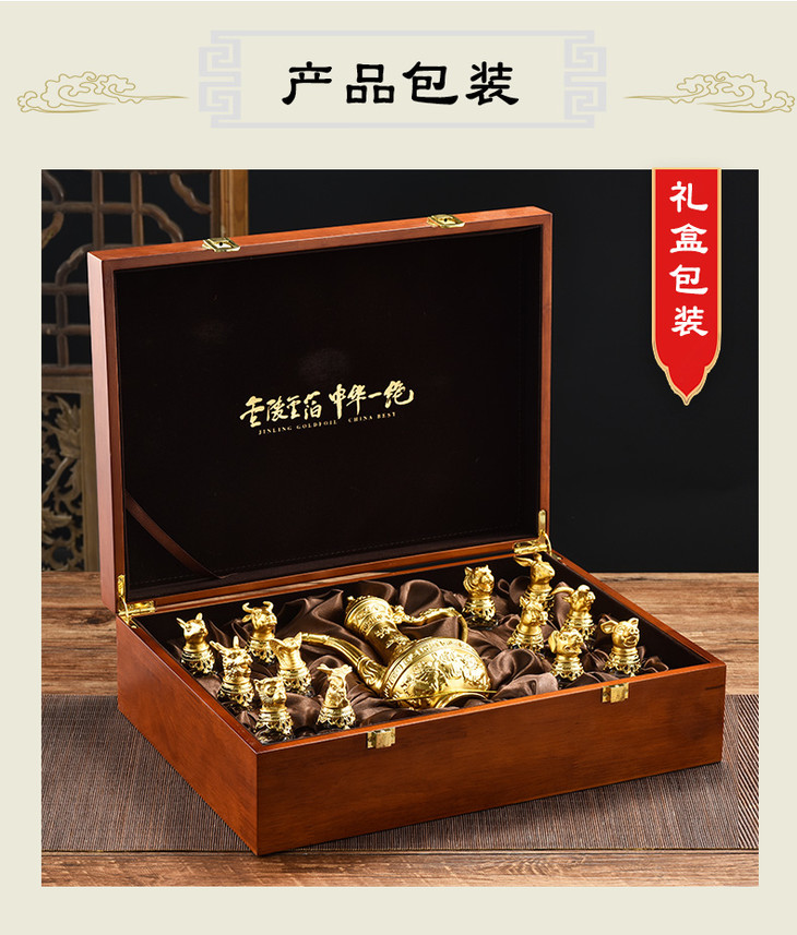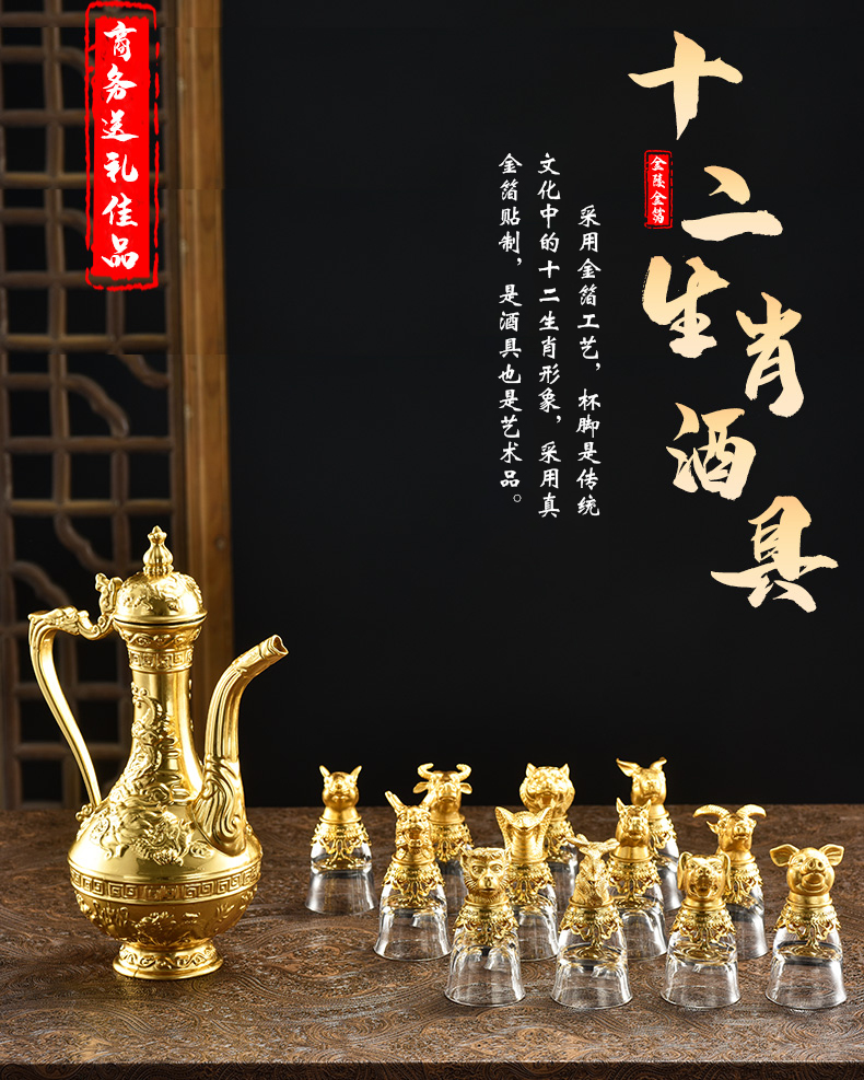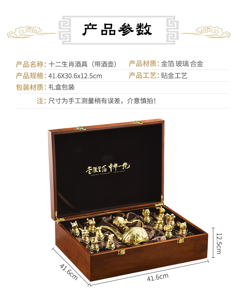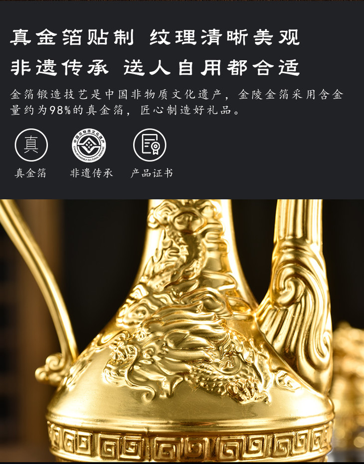 金陵金箔 十二生肖贴金酒具带酒壶南京特色轻奢礼品送贵宾领导礼物