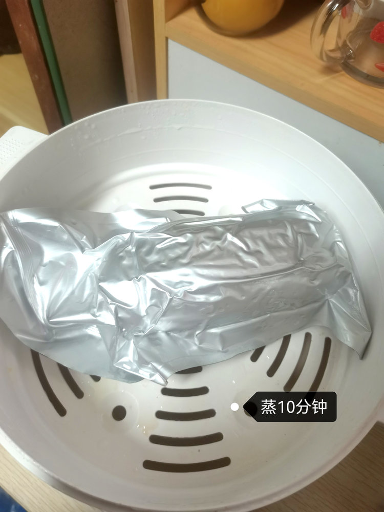 拆开包装,放锅里隔水蒸10-15分钟