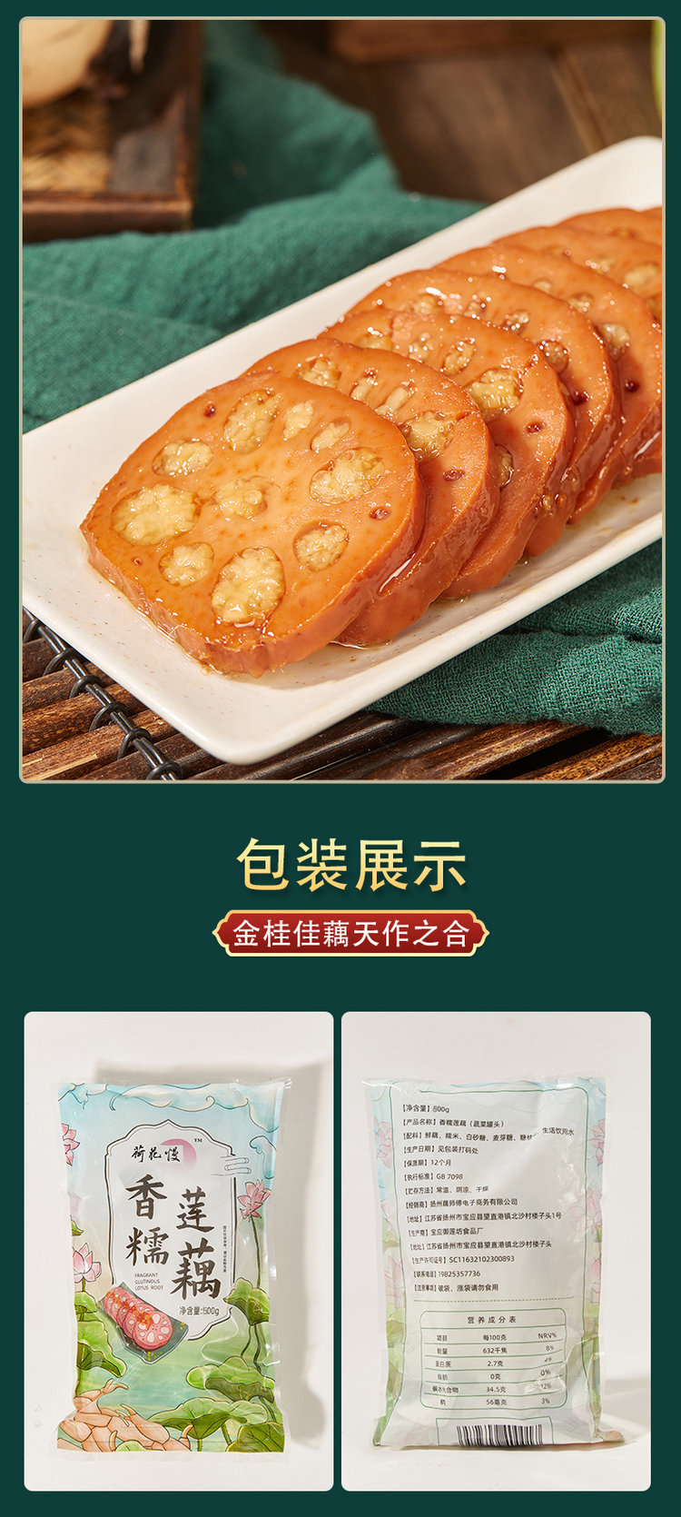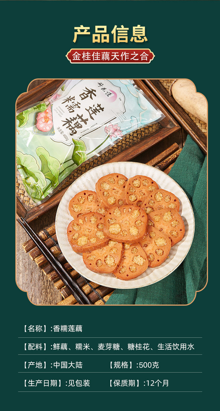 某辉同行卖爆-国家地理标志【荷花慢-宝应香糯桂花糖莲藕】无添加香精色素防腐剂-宝应县“荷藕之乡” 自然生长 秘制配方 粉糯甘甜 优中选优 500克单个糯米糖藕 打开就能吃 甜而不腻 入口即化