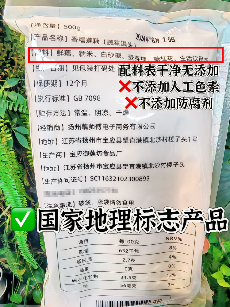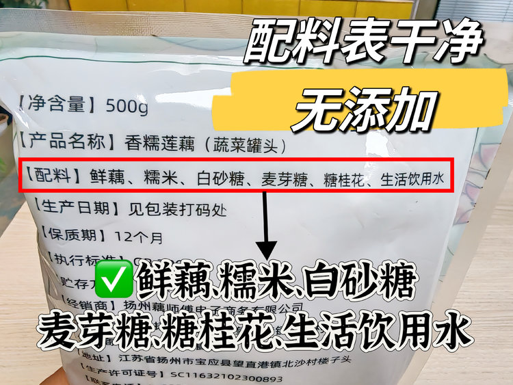 ✅鲜藕、糯米、白砂糖、麦芽糖、糖桂花、生活饮用水