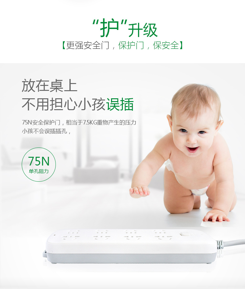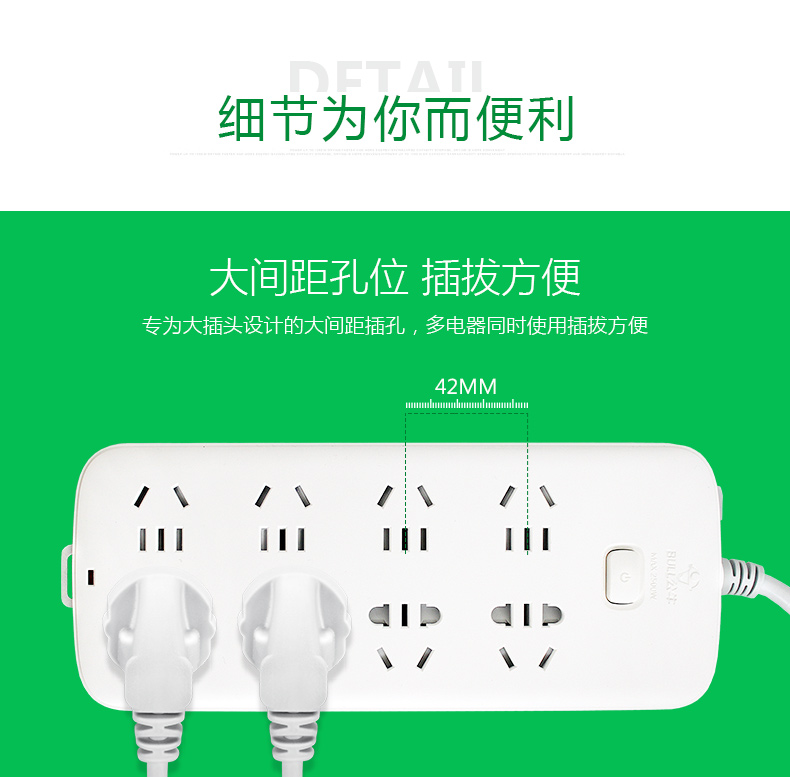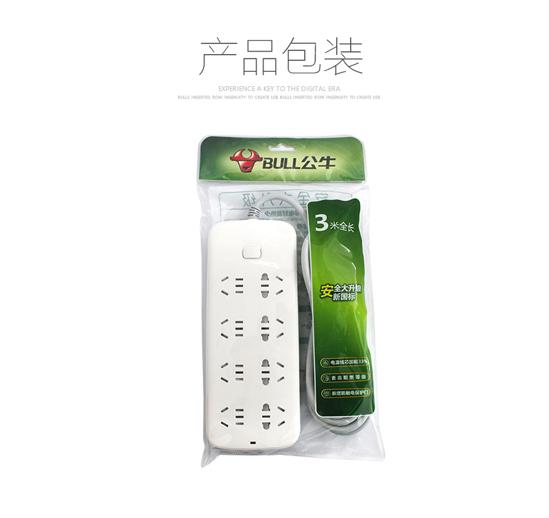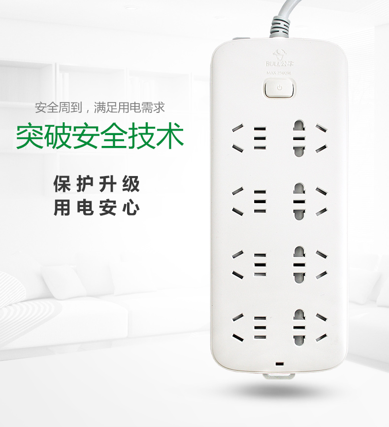 公牛(BULL)新国标插座/插线板/插排/排插/接线板/拖线板 GN-S1080 8位总控全长3米