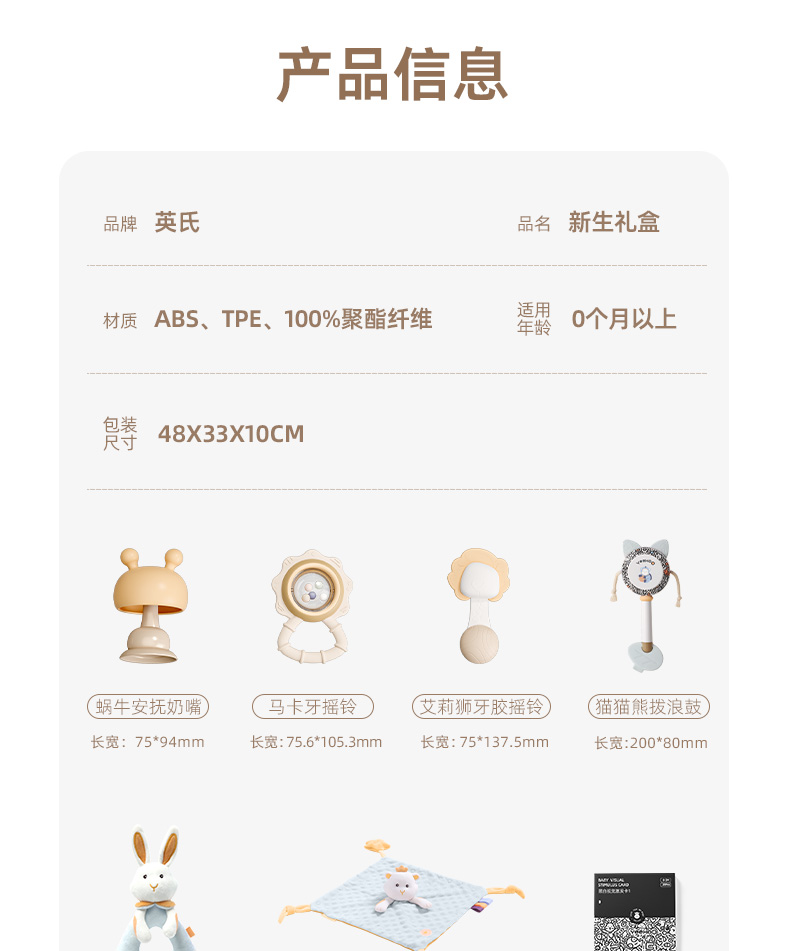 英氏新生儿喜悦礼盒婴儿玩具摇铃0-1岁3个月宝宝满月见面月子礼物6975697871094