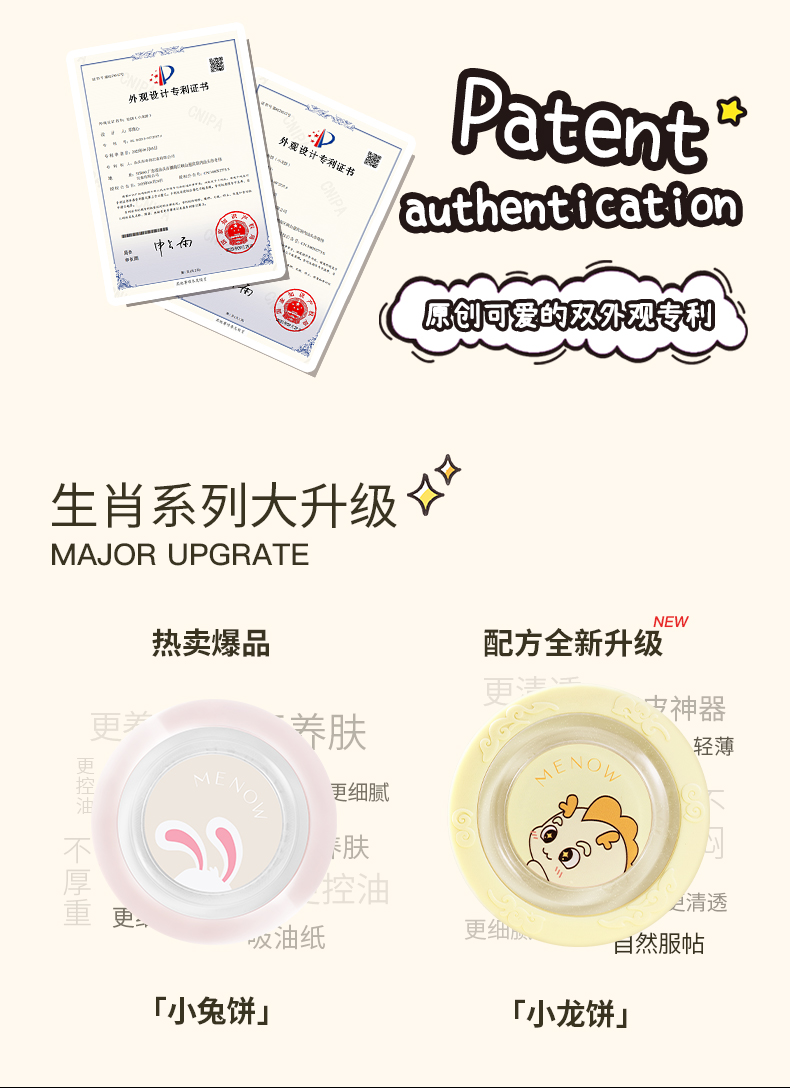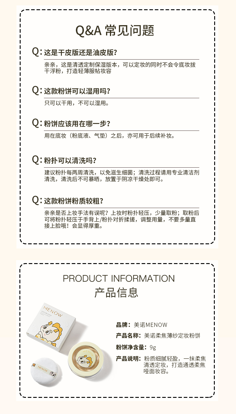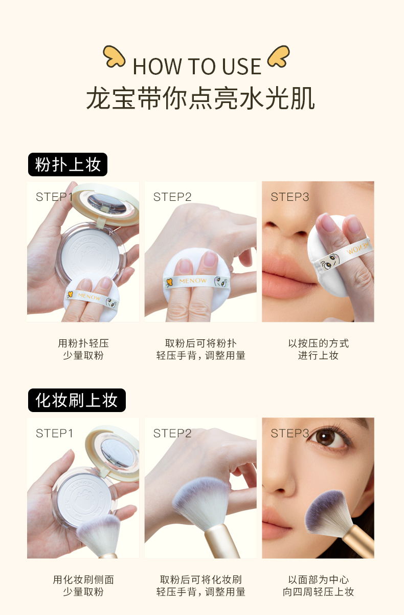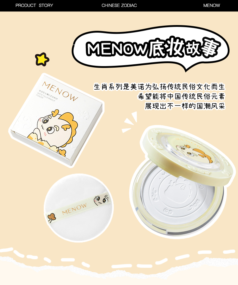 【MENOW】美诺龙年限定蜜粉饼定妆散粉控油持久遮瑕养肤大白饼