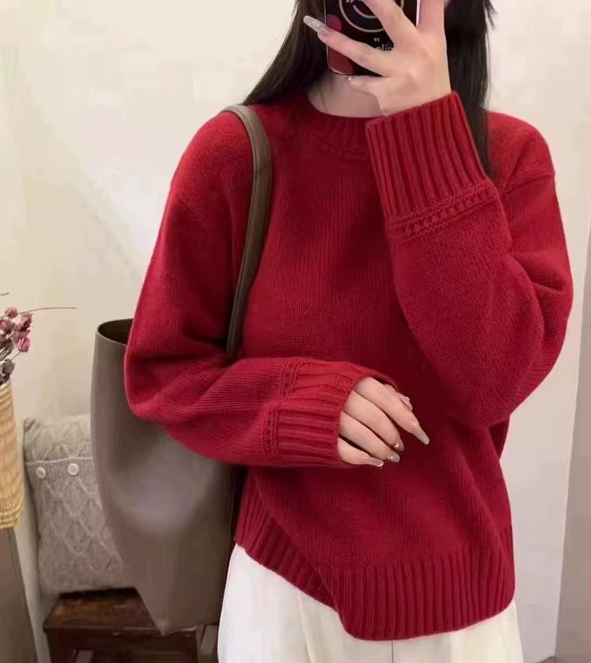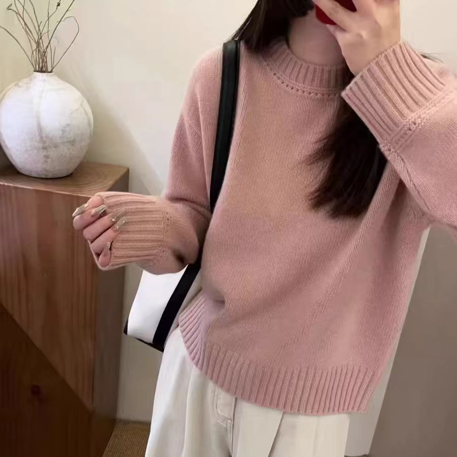 S·Y·C【悠然时光】100山羊绒圆领加厚宽松保暖毛衣女CYR240209