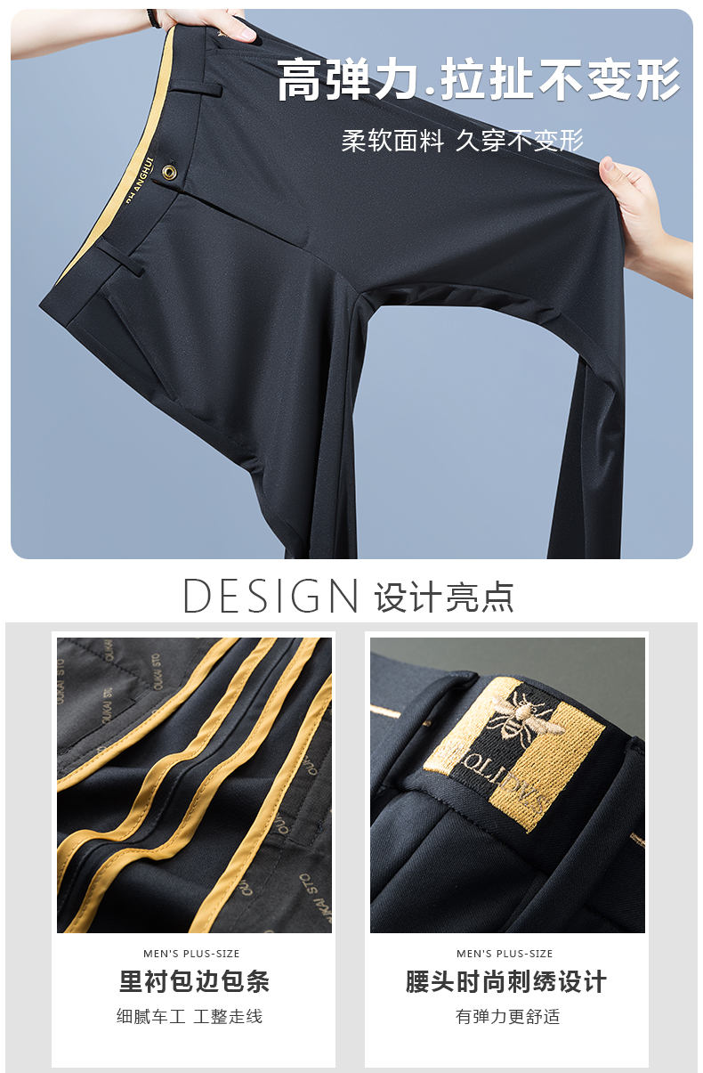 高弹【新款DDP】大依优型商务休闲裤西裤YKK拉链直筒裤弹力加肥加大宽松大码男士显瘦绅士