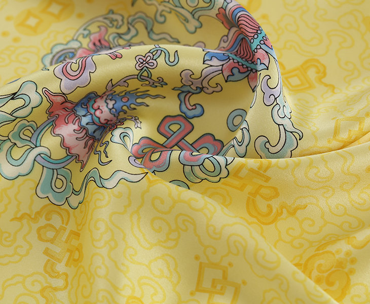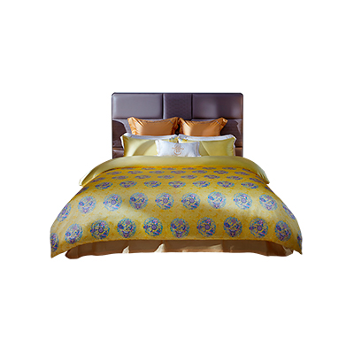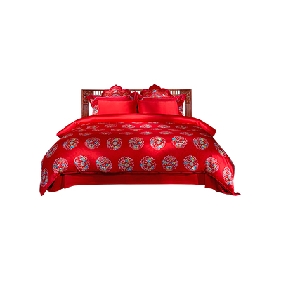 被面为印花软缎与素色软缎拼接,被里为素色软缎,触感柔软顺滑。
