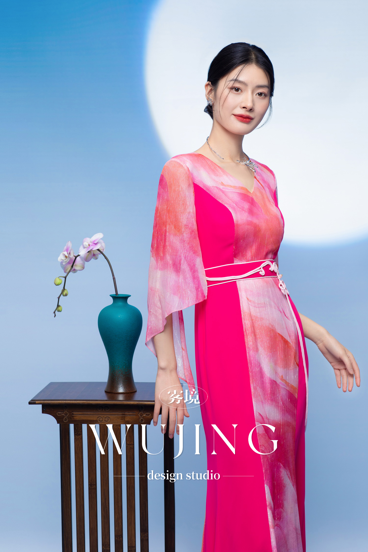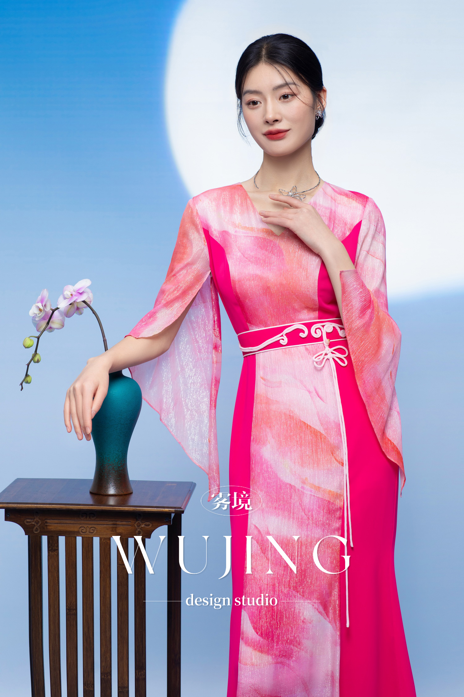 3205261 樱樱桃夭 重磅真丝银丝印花水晶纱/进口纹理蜂窝缎连衣裙 雾境