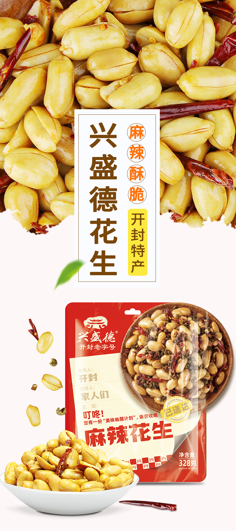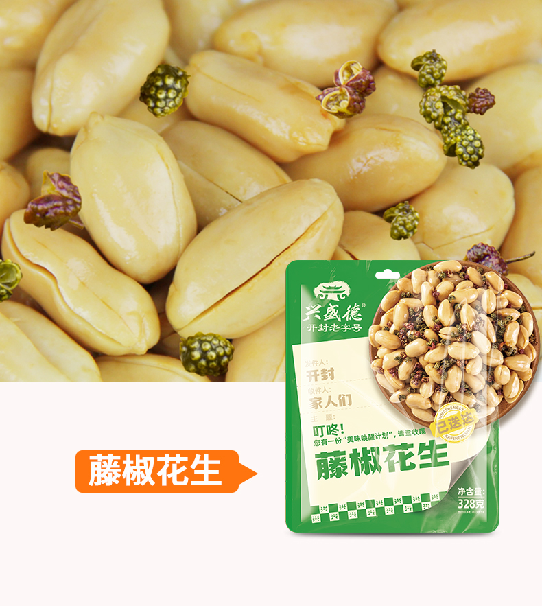 兴盛德328g麻辣花生五香藤椒花生河南开封特产礼物零食坚果