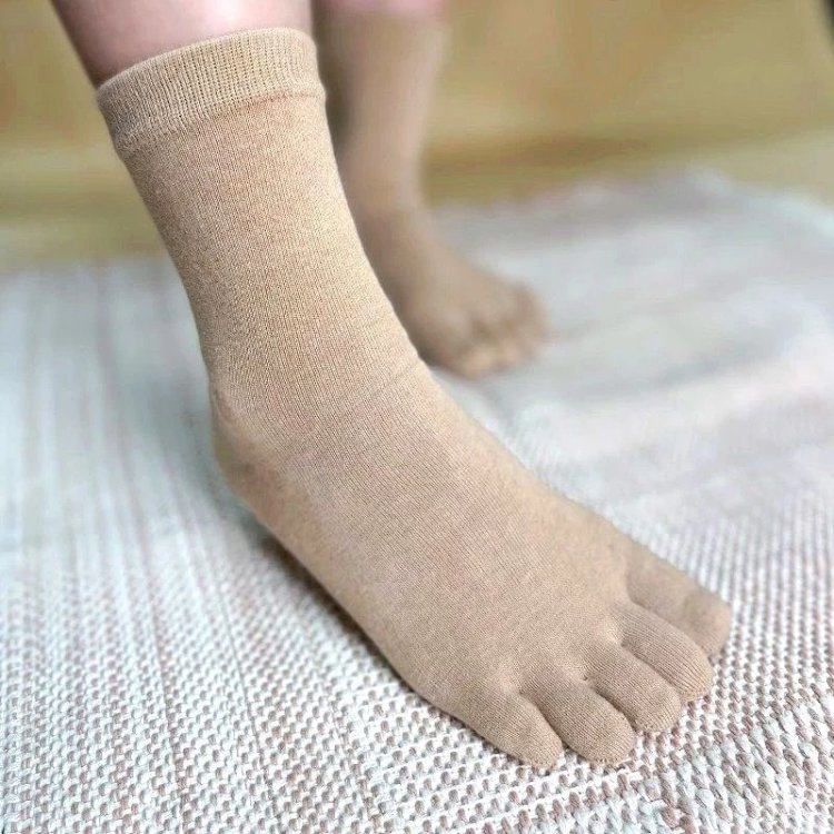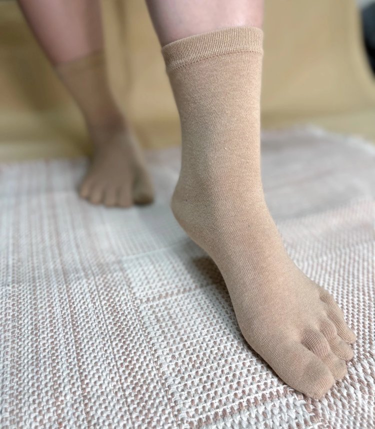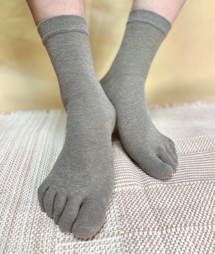 【素道有机彩棉 五指袜】SWS0023 让您的每一个脚趾慢慢的自然舒展 棕色/灰色 [漳州仓]