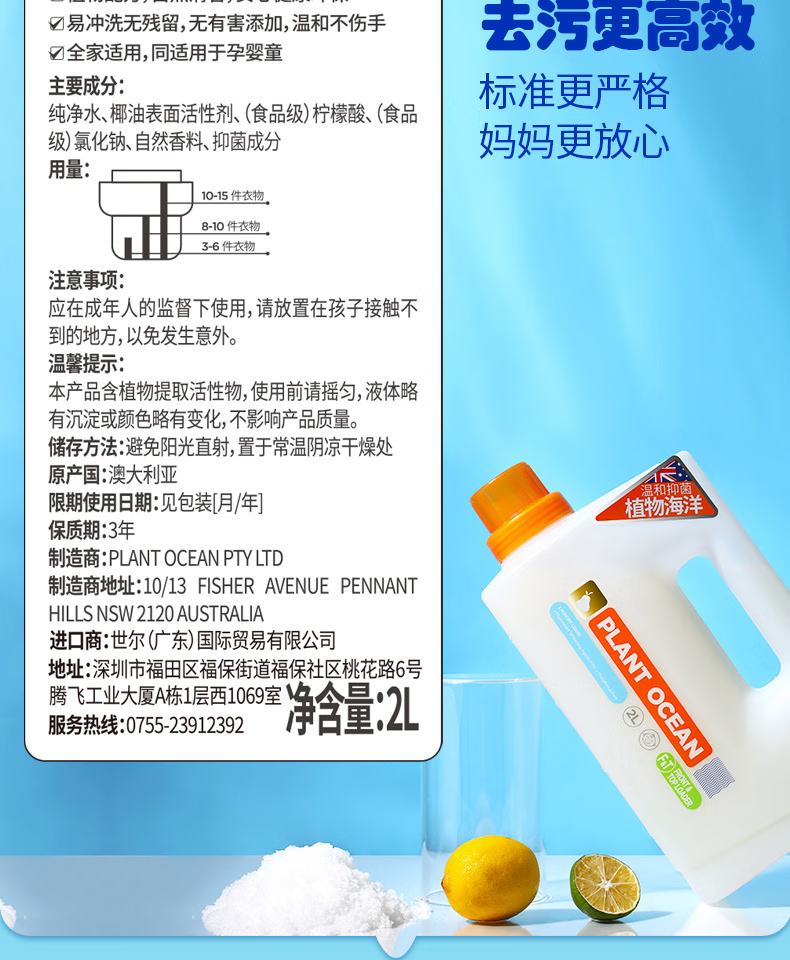 植物海洋澳洲进口洗衣液香全家适用2L ZJ