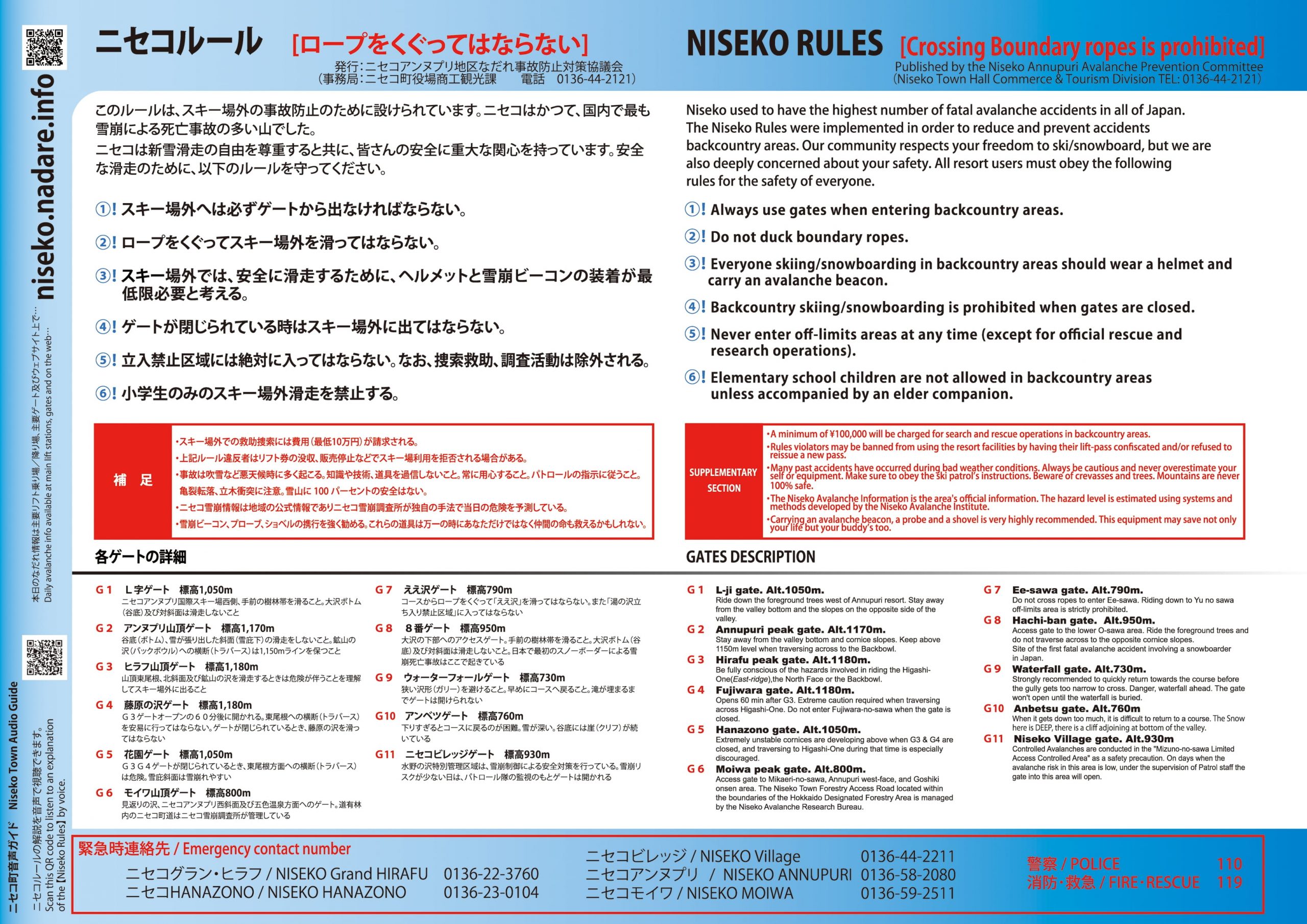 在北海道,特别是以Niseko为首的几个著名的"野雪圣地",对于道外滑雪都有非常严格的规定(如"Niseko Rules"),有指定的区域和指定的入口,并且在入口处有检查Beacon的信号接收器,这里的地形、线路千变万化,有暗河、瀑布等等,稍有不慎可能就会陷入危险或者哦迷路,所以在这里,技术、经验、装备、意识,缺一不可