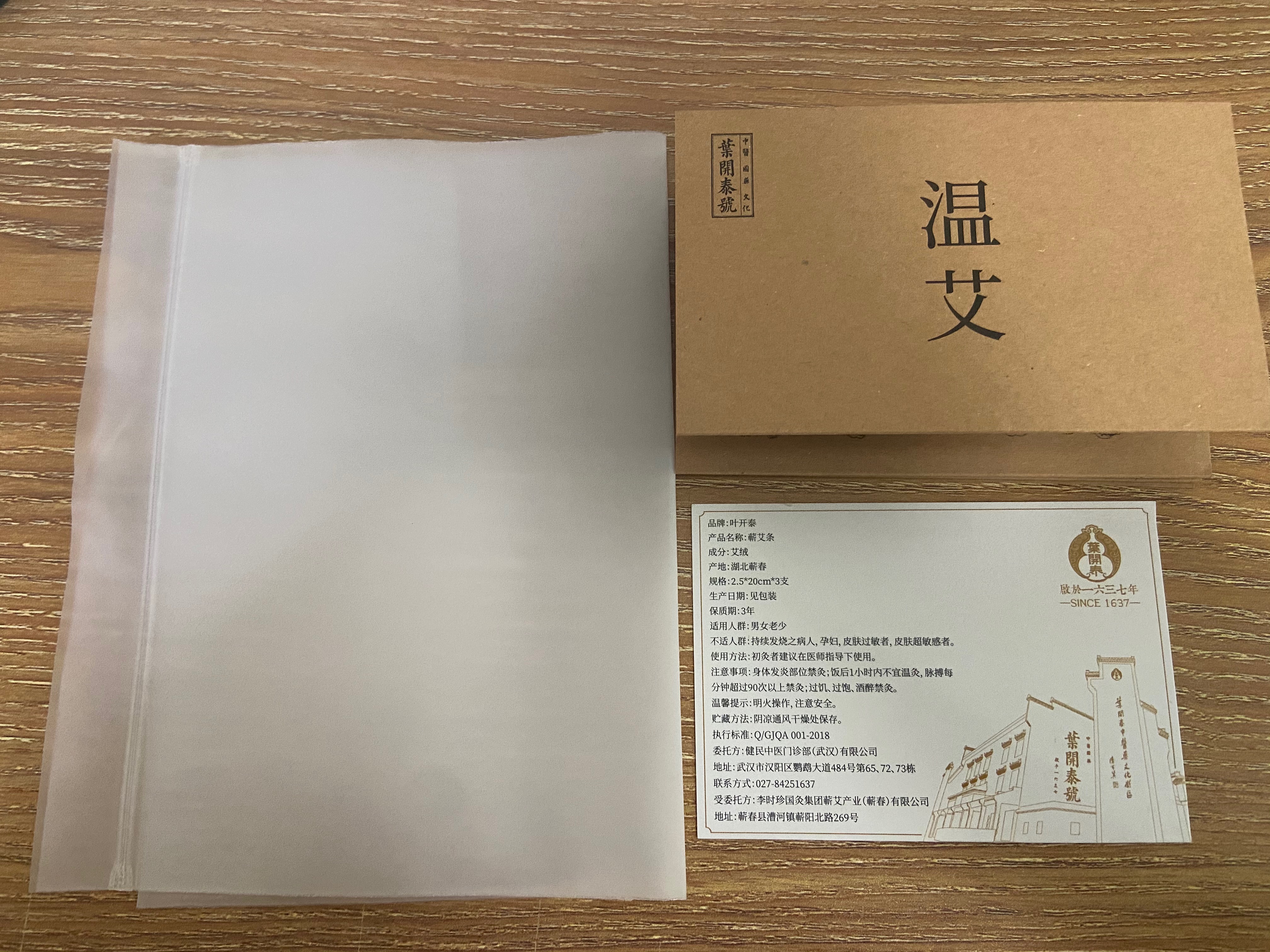 为保证艾绒成分不流失,带来更好的使用体验,每支艾条表面均贴有一层牛皮纸膜。使用前请揭开并去掉此膜。