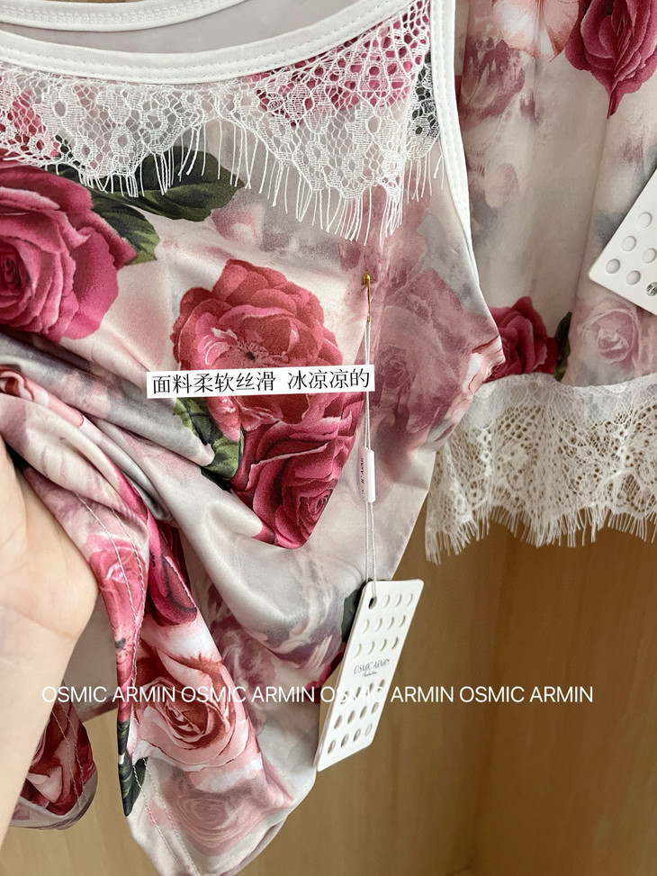 精美的玫瑰印花与蕾丝设计,