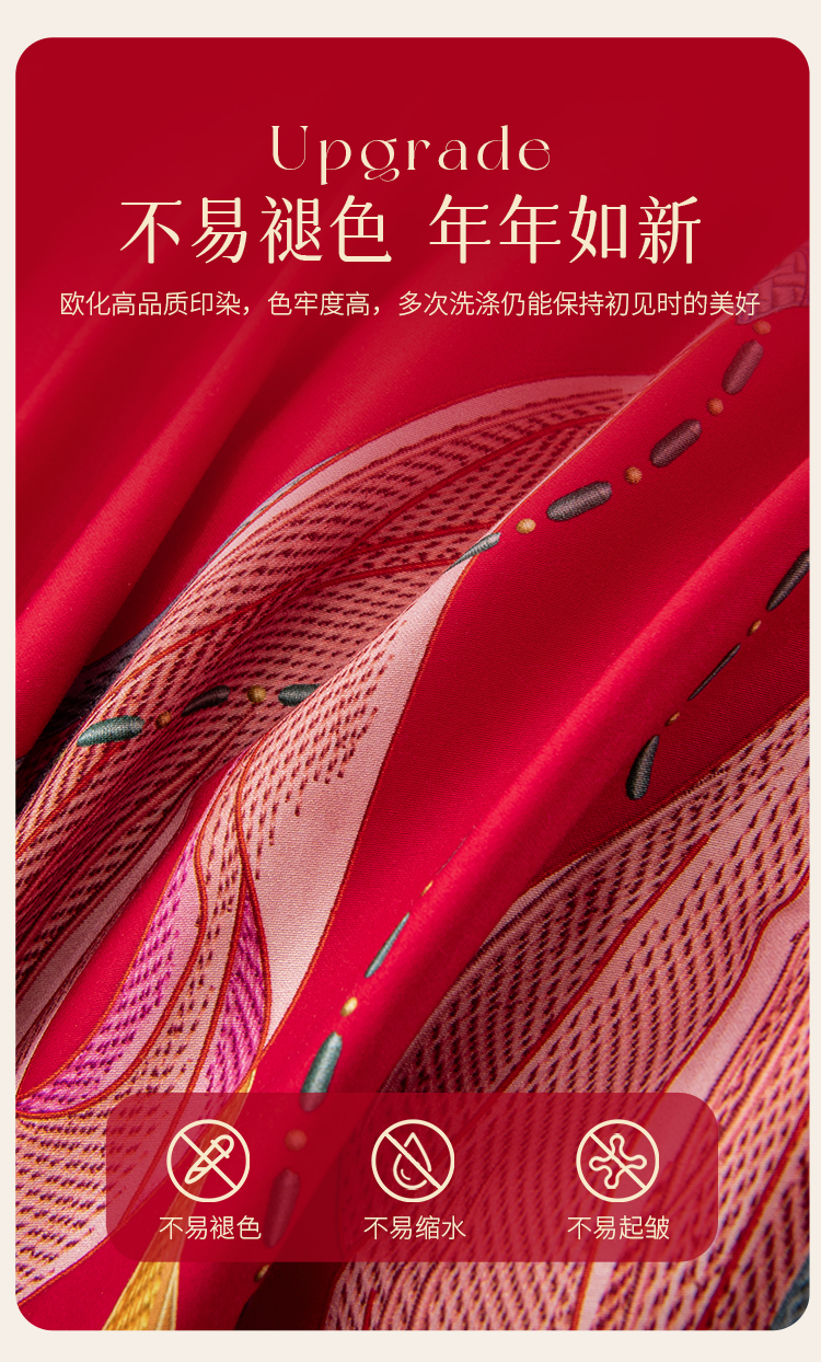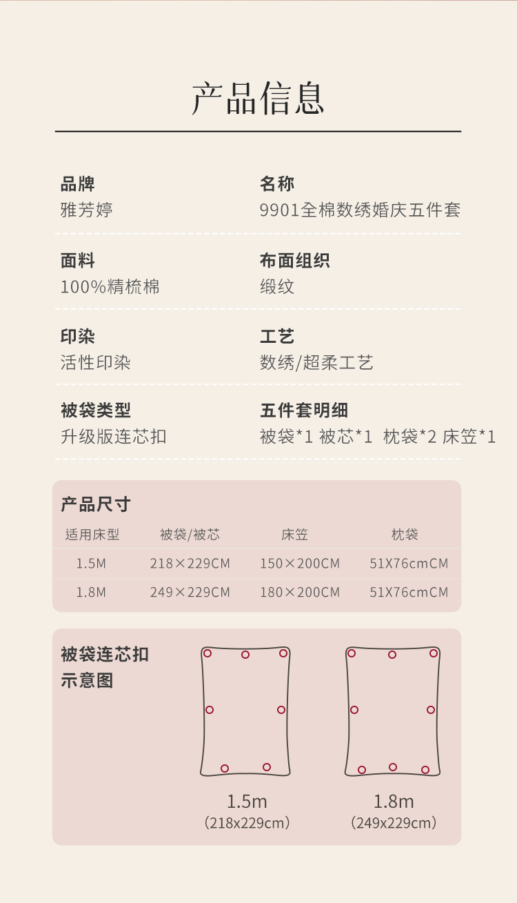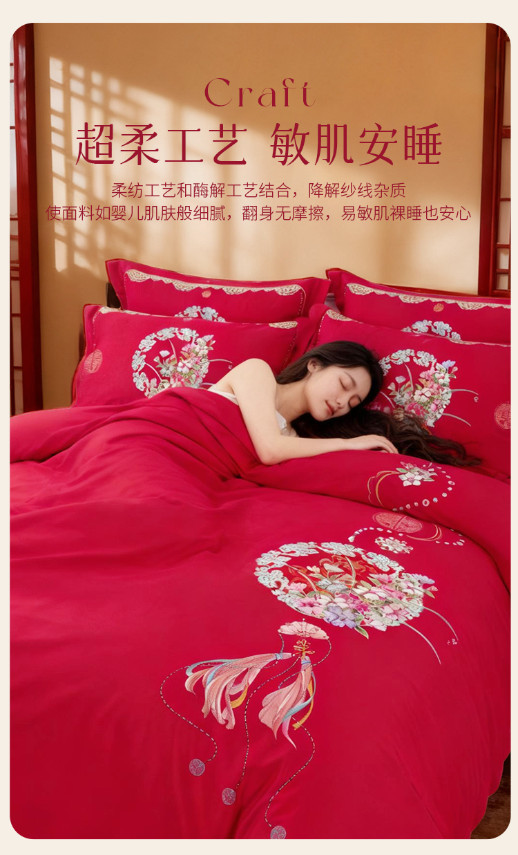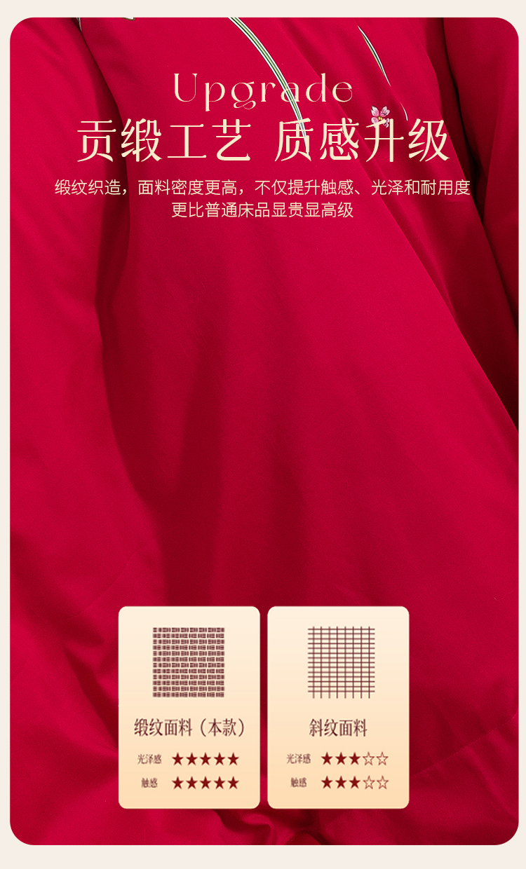 2025年新款雅芳婷全棉婚庆五件套床笠款贡缎数绣被套结婚床上用品