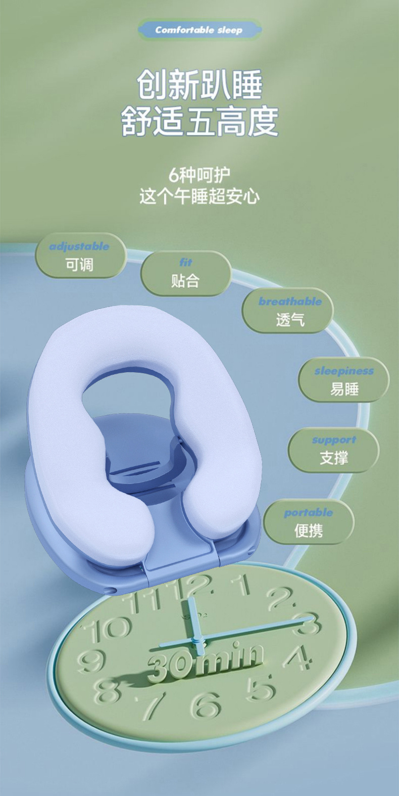 【四季通用❗️儿童趴趴枕】智能按键不伤手多,档位随心调,慢回弹记忆棉,三角稳定支撑,安稳才有深睡眠,中小学生教室桌子记忆棉午休枕趴趴枕QQ