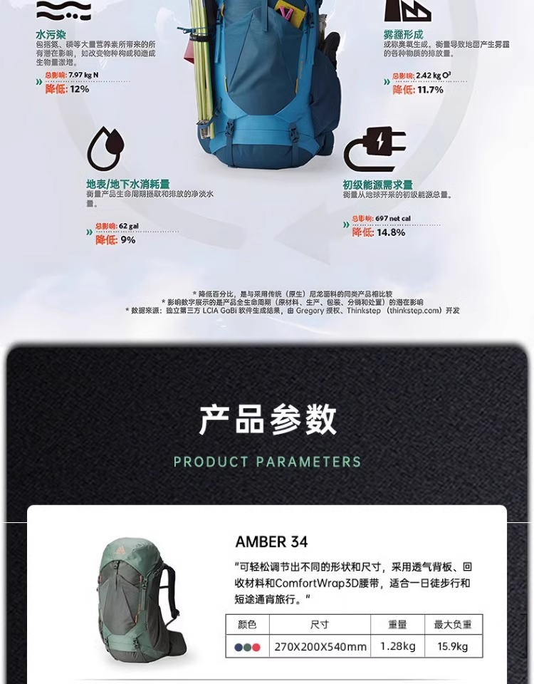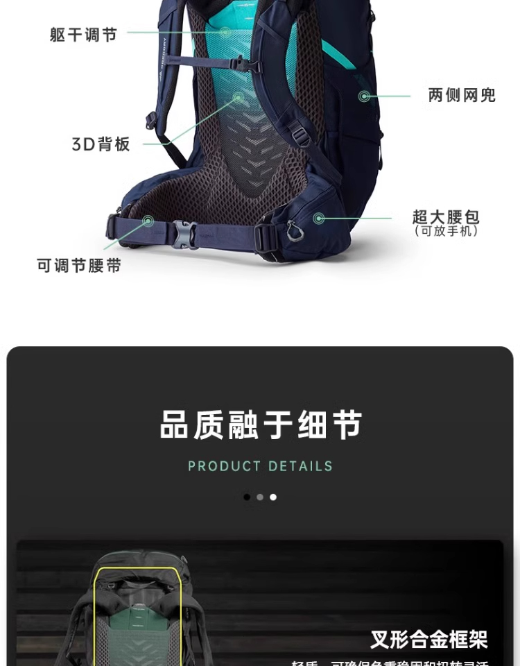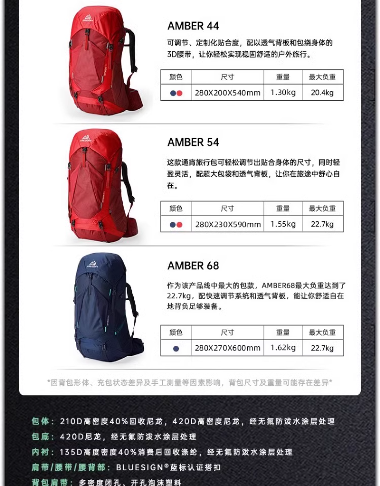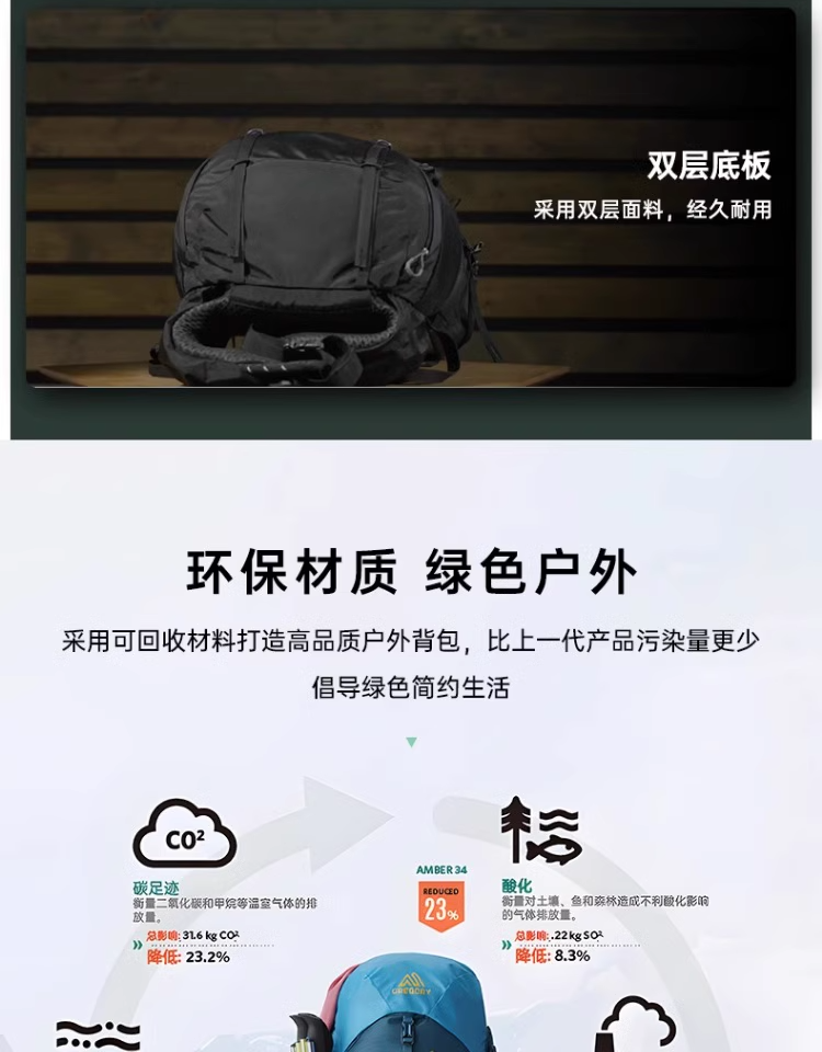 GREGORY格里高利AMBER琥珀户外专业徒步旅行登山双肩背包大容量女