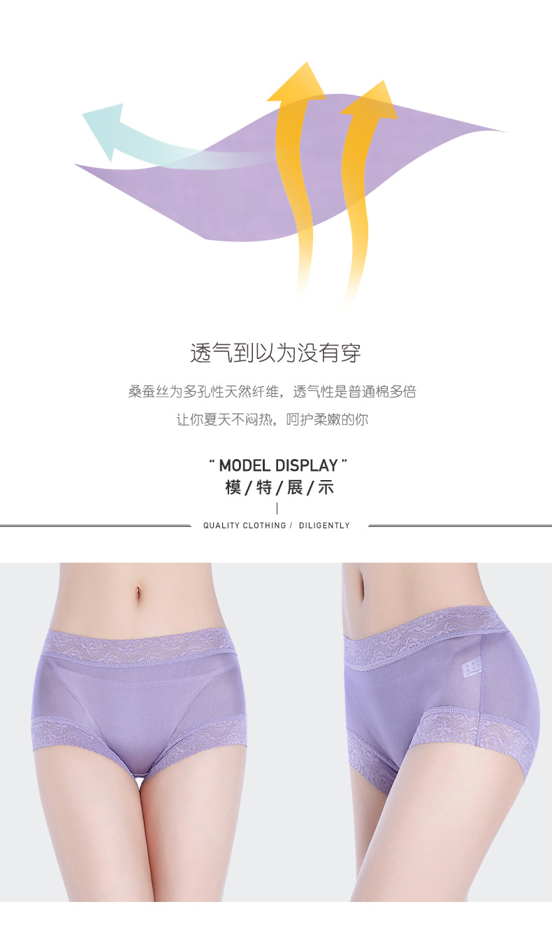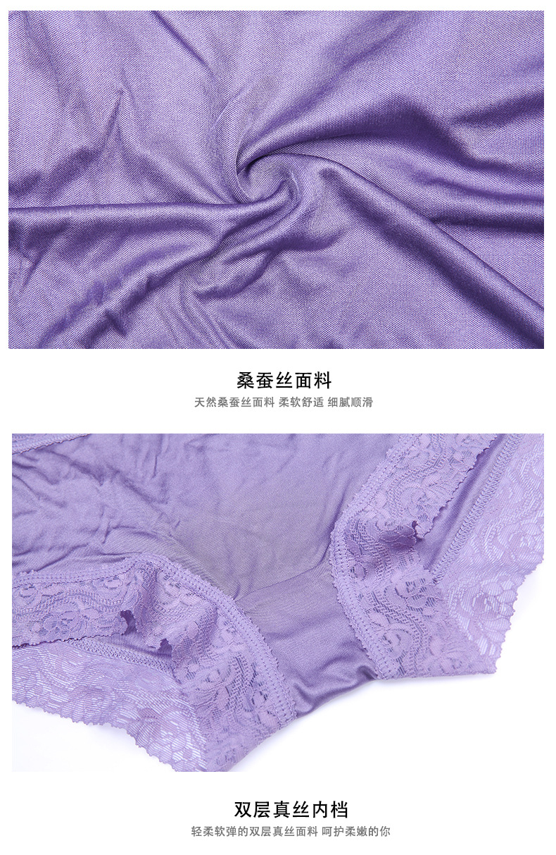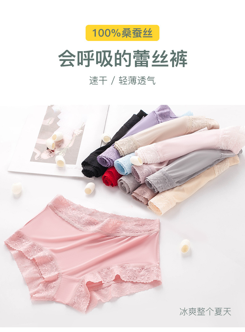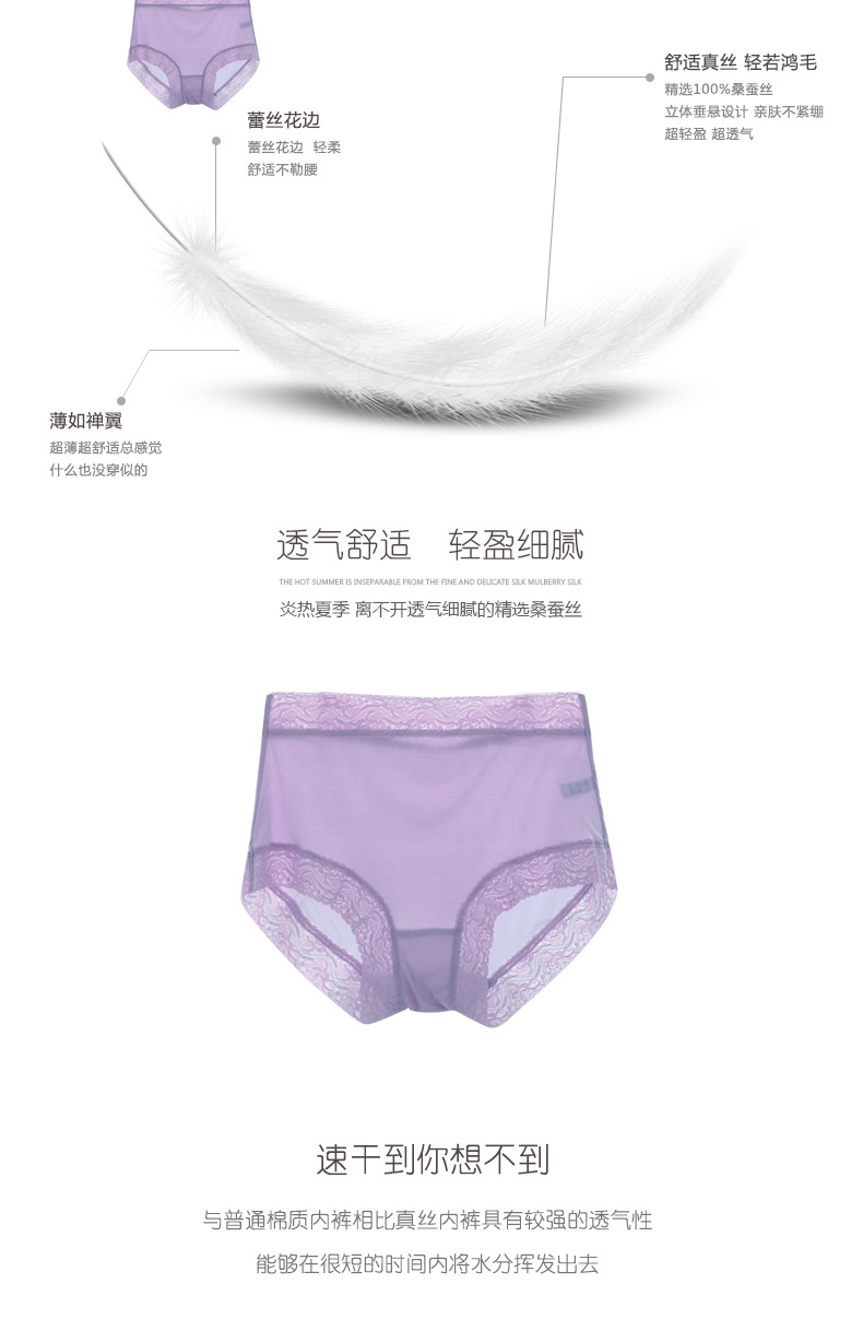 ARN-K005真丝内裤无痕42针桑蚕丝蕾丝内裤透气中高腰大码真丝女士平脚内裤