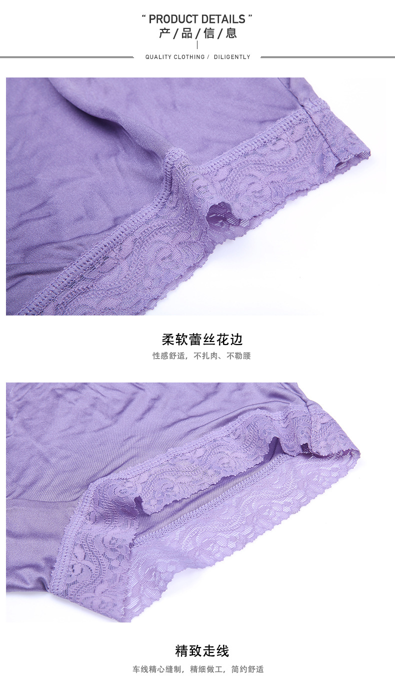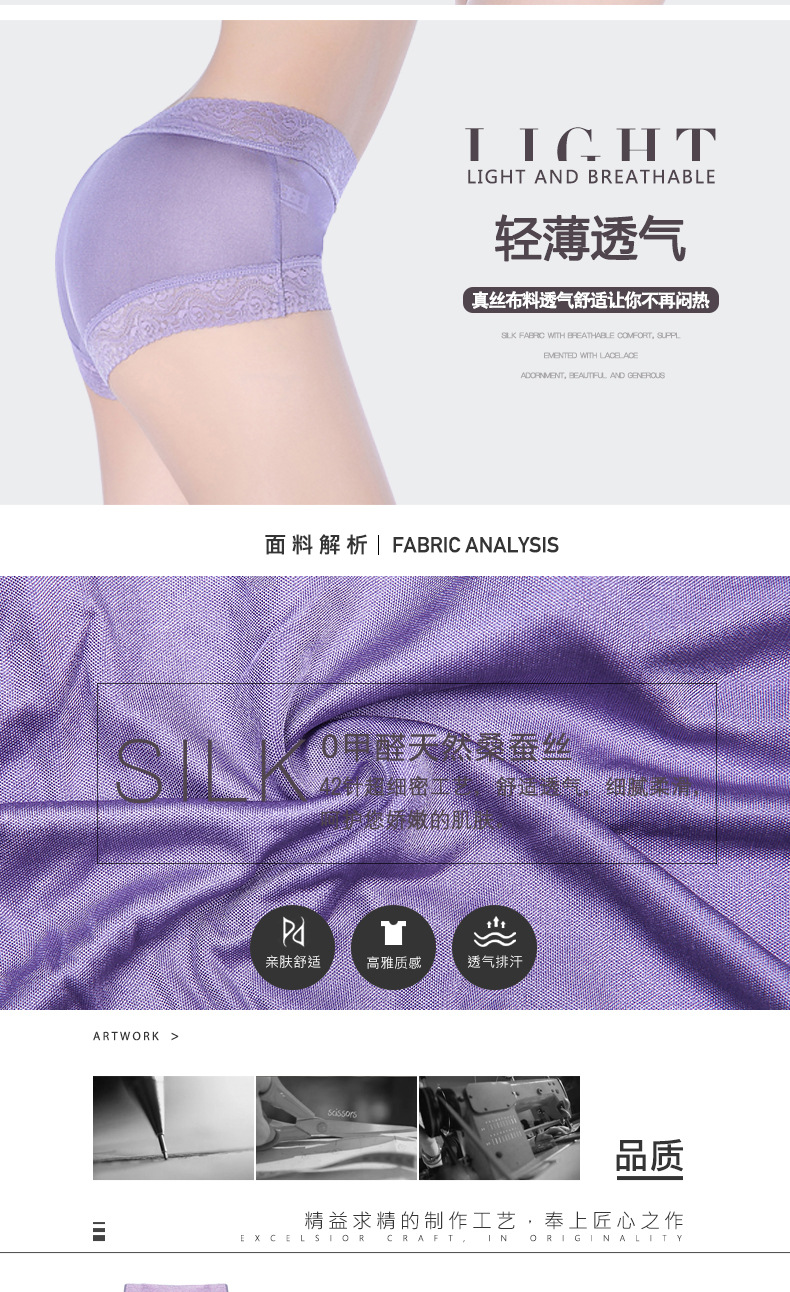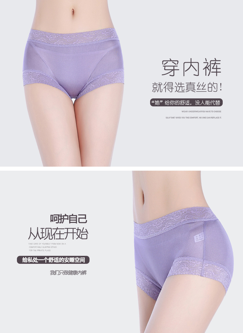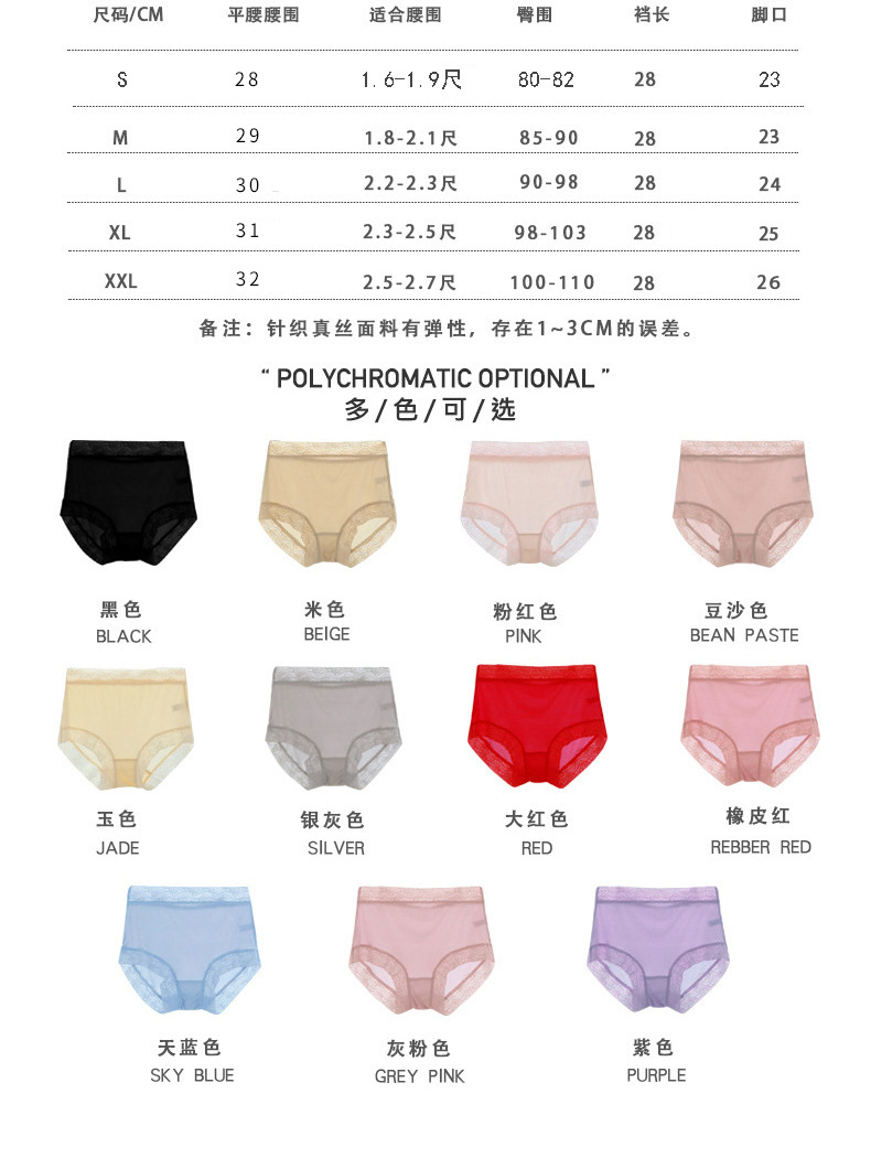 ARN-K005真丝内裤无痕42针桑蚕丝蕾丝内裤透气中高腰大码真丝女士平脚内裤