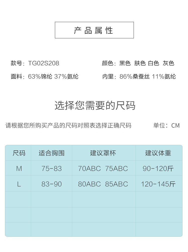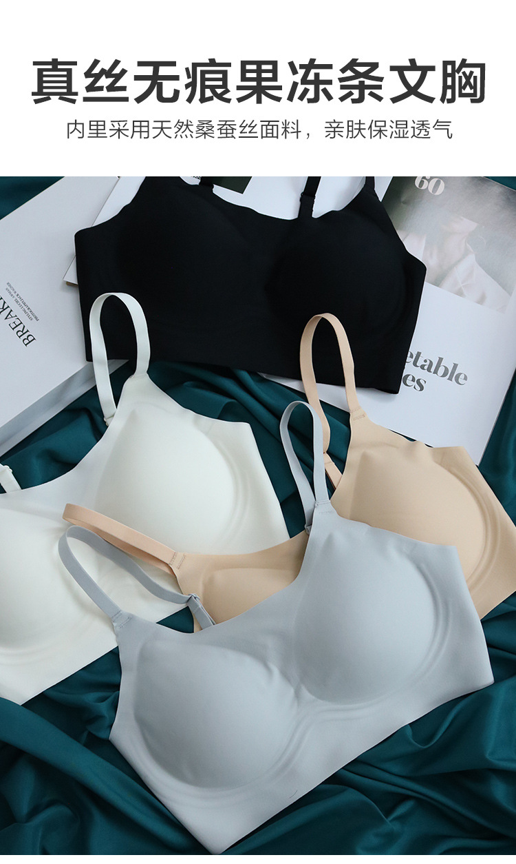 TG-TG02S208真丝无痕果冻条文胸 款无钢圈桑蚕丝内衣侧翼加宽收副乳