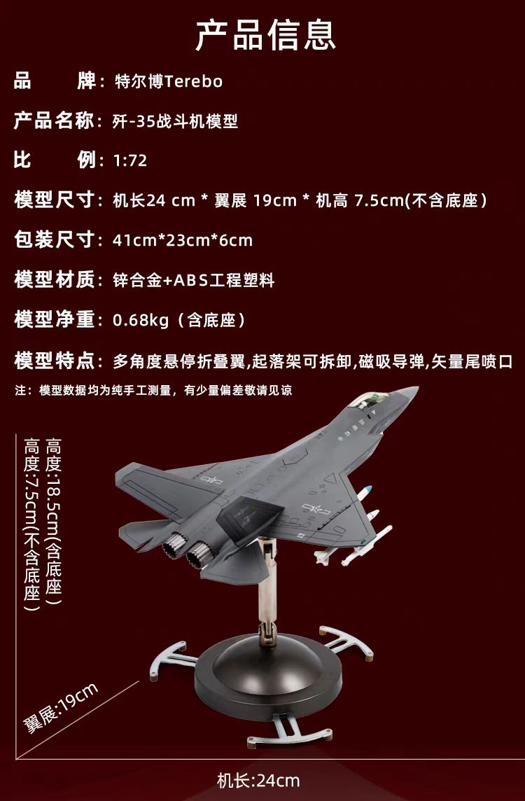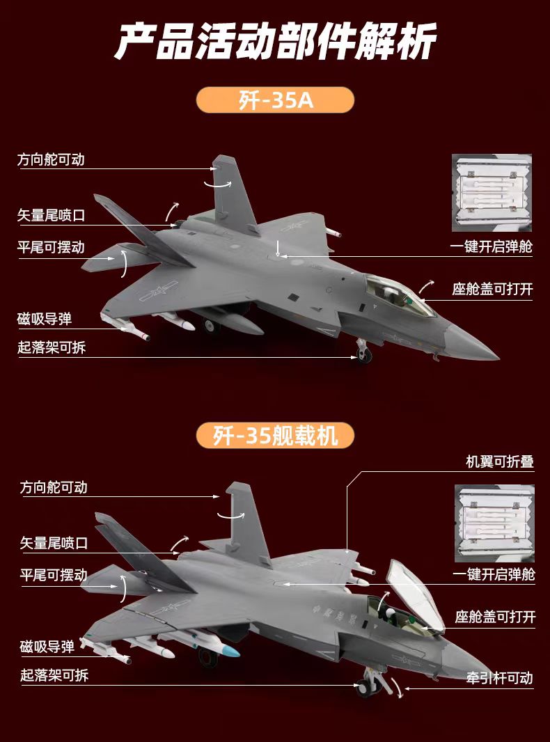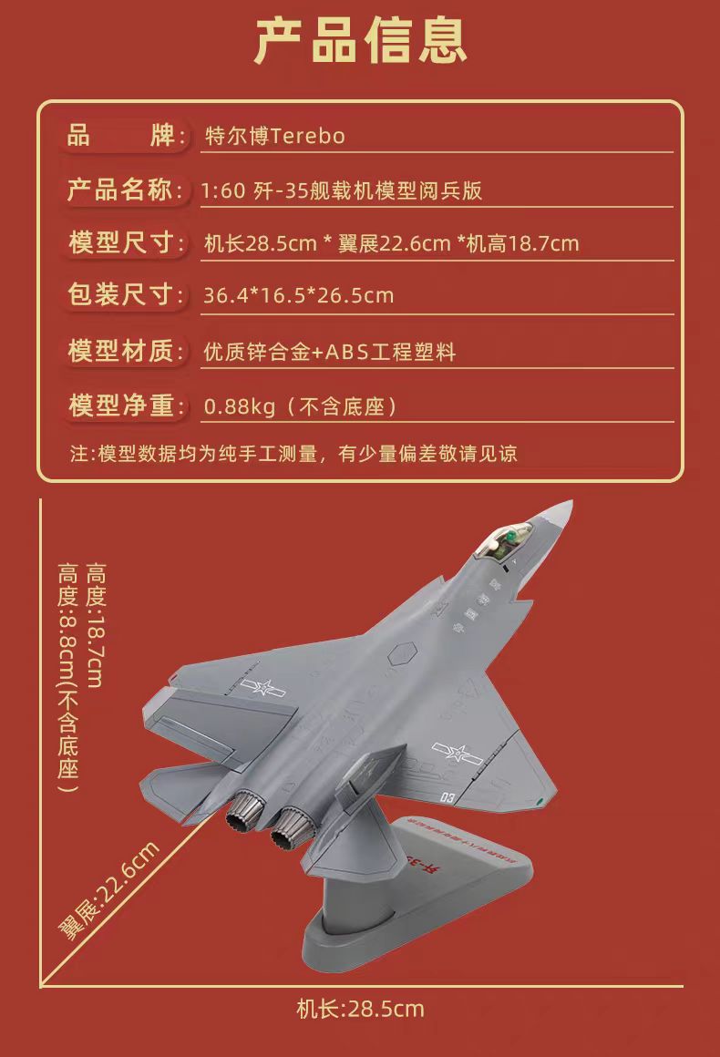 【长春航展、九三阅兵纪念品-新品重磅】特尔博-阅兵系列-歼35A飞机模型合金歼35B舰载机战斗机航模