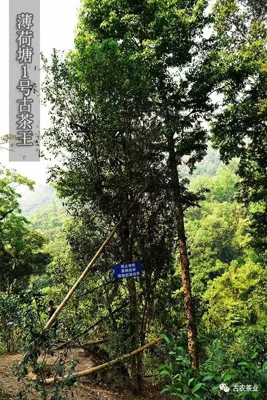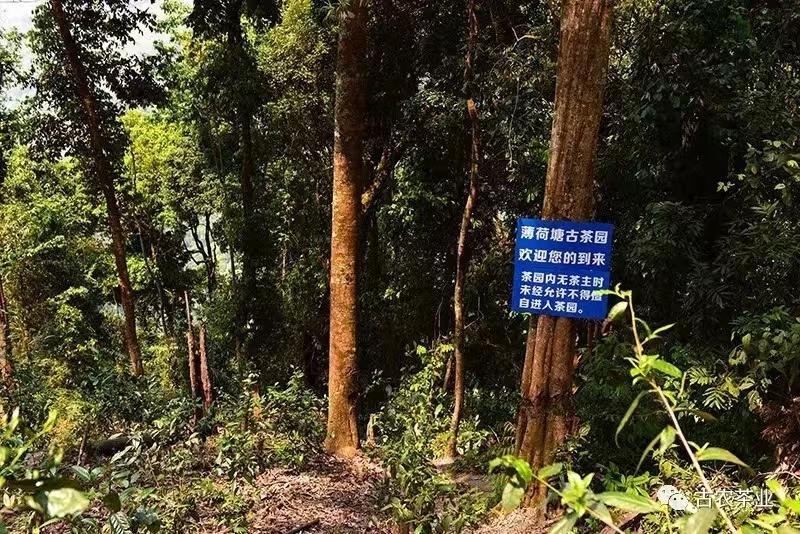 古茶园属于一个瑶民家族四户人家共同所有和管理,古茶树49棵,每年产量不足百公斤。据说,古茶园为早期家族父辈种植草果时发现的,古茶园里自然生长着许多薄荷而得名薄荷塘。最大的一棵古茶树位于岩崖下方,高10余米,早些年茶叶不值钱,好多古茶树已被砍伐损毁。据我们实地考证,薄荷塘古茶树均为有性系栽培型大叶种古茶树,鲜叶多为中小叶形,古茶树有明显台刈管理现象,非野生茶种。古茶树应该是早期先辈种植,后期世事变迁,原住民迁移后,古茶树无人为干预,自然生长,遗留至今。