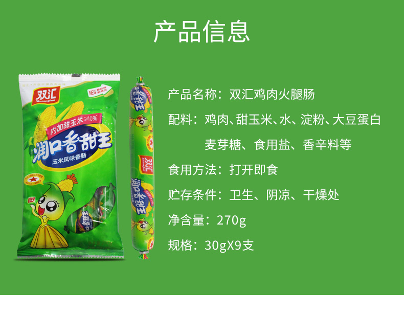 双汇香甜玉米肠袋装30g*9支 即食肉食火腿肠休闲零食小吃整箱香肠JPY带授权招加盟代理