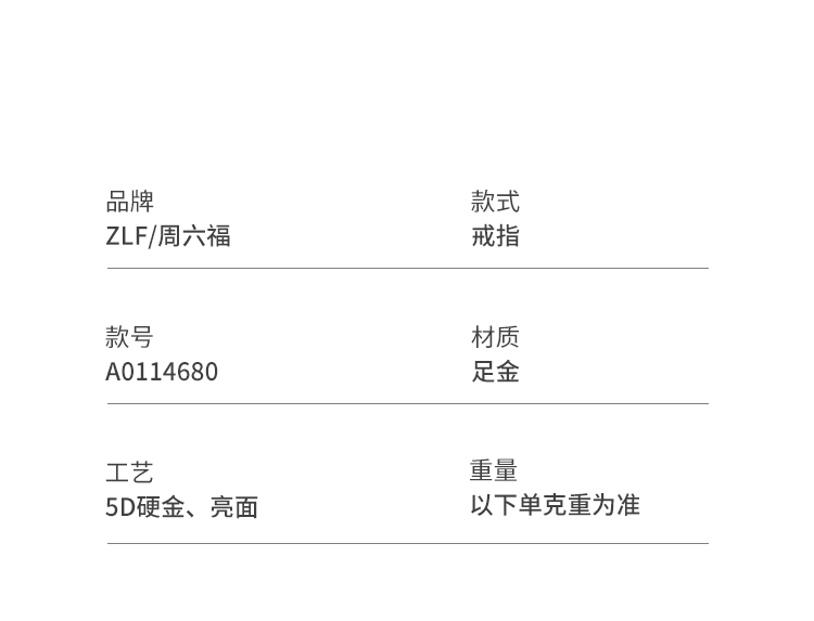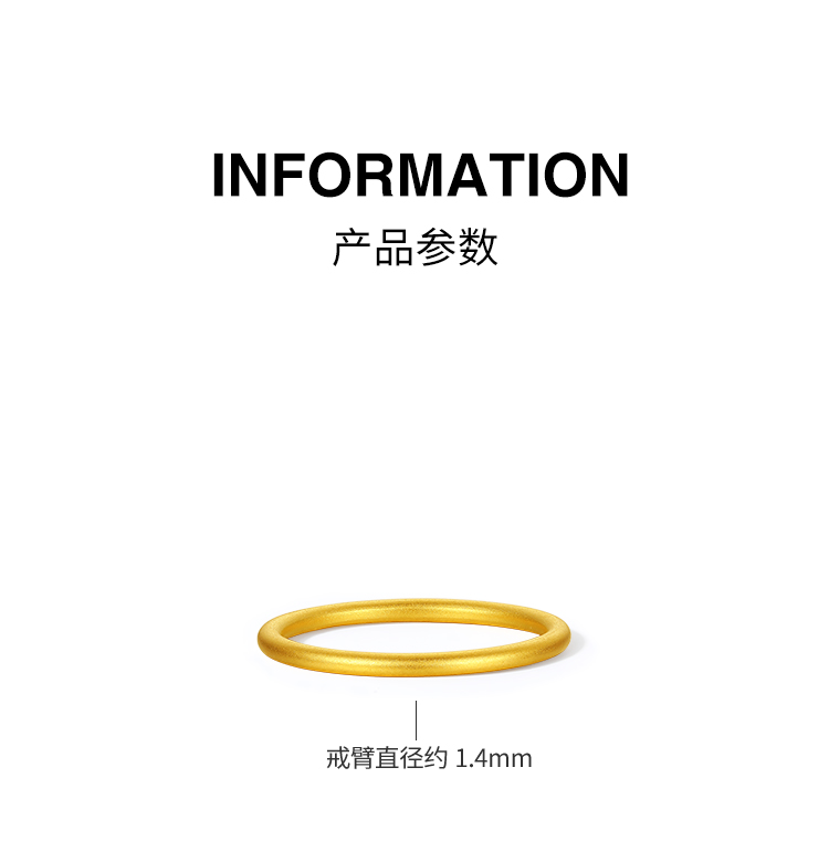 周六福黄金戒指女款5d硬金定价沙面素圈闭口戒指送女友礼物送女友