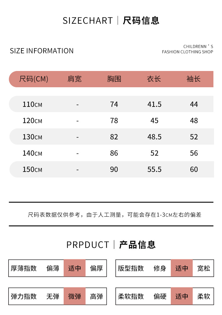 | 参考身高: 110/52 120/56 130/60 140/64 150/68 | 适用季节: 春秋 |