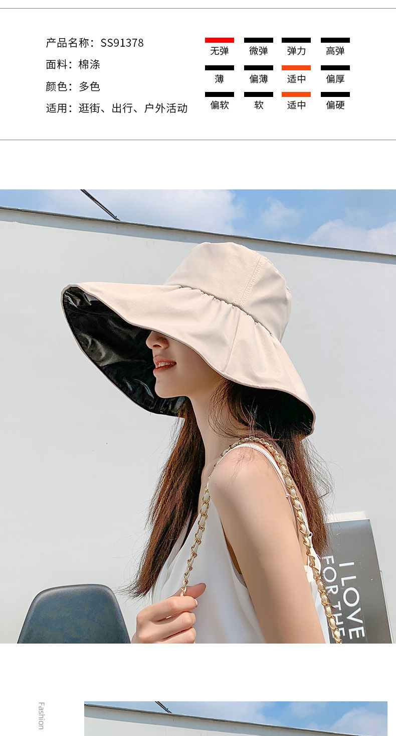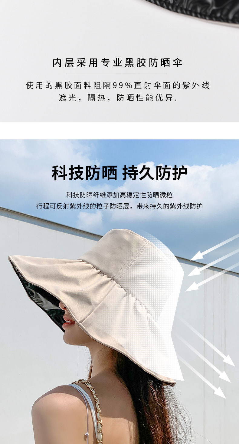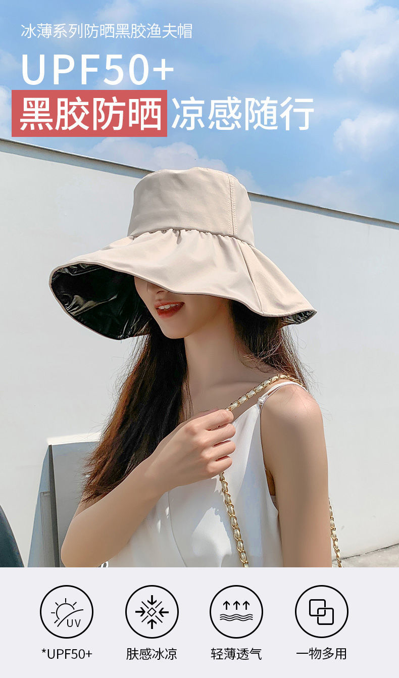 【时尚百搭!UPF50+防晒渔夫帽】火爆INS的黑胶遮阳帽!谁带谁脸小,阻挡99%紫外线,出街百搭,男女款防晒帽,轻便可折叠易携带