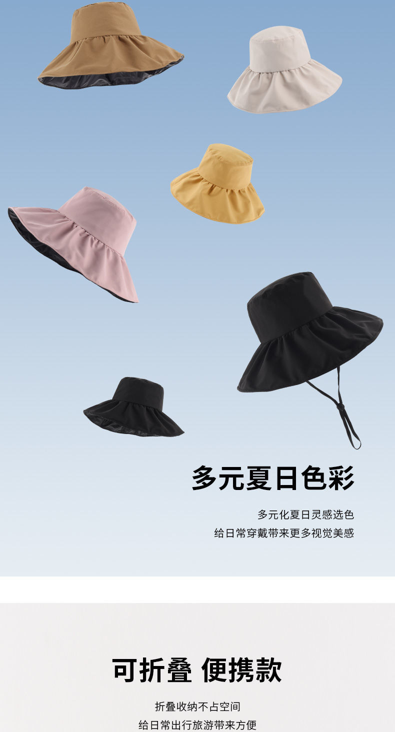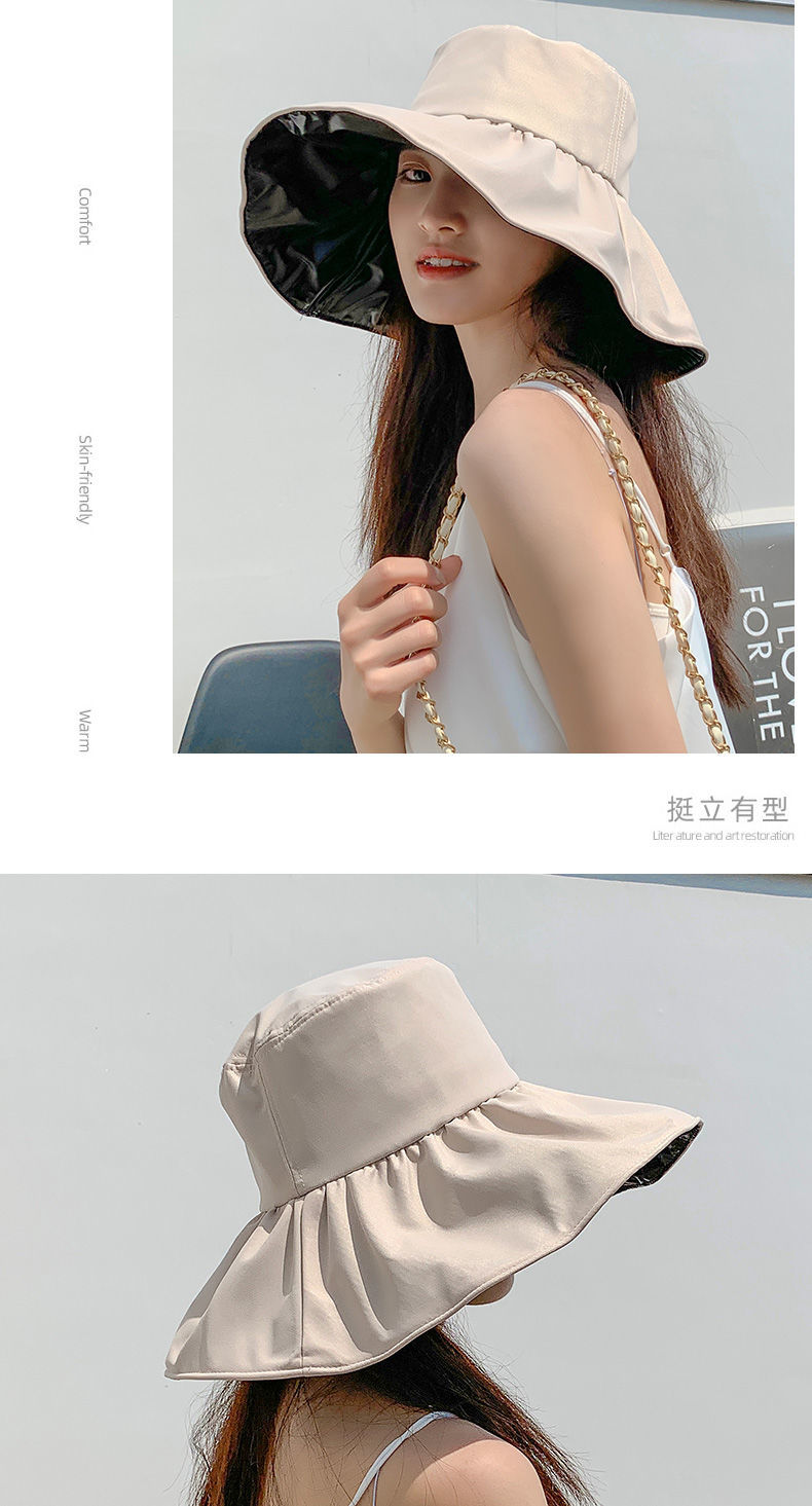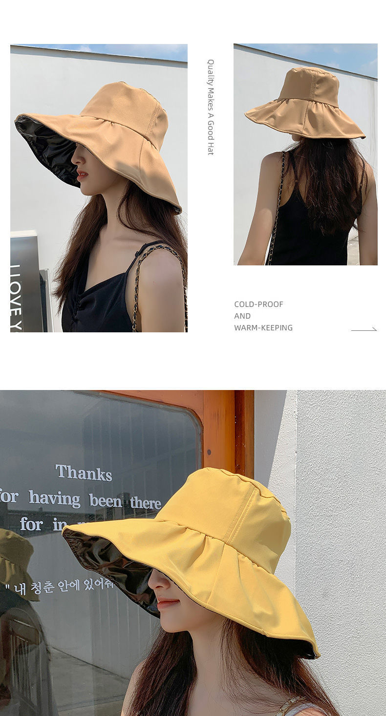 【时尚百搭!UPF50+防晒渔夫帽】火爆INS的黑胶遮阳帽!谁带谁脸小,阻挡99%紫外线,出街百搭,男女款防晒帽,轻便可折叠易携带