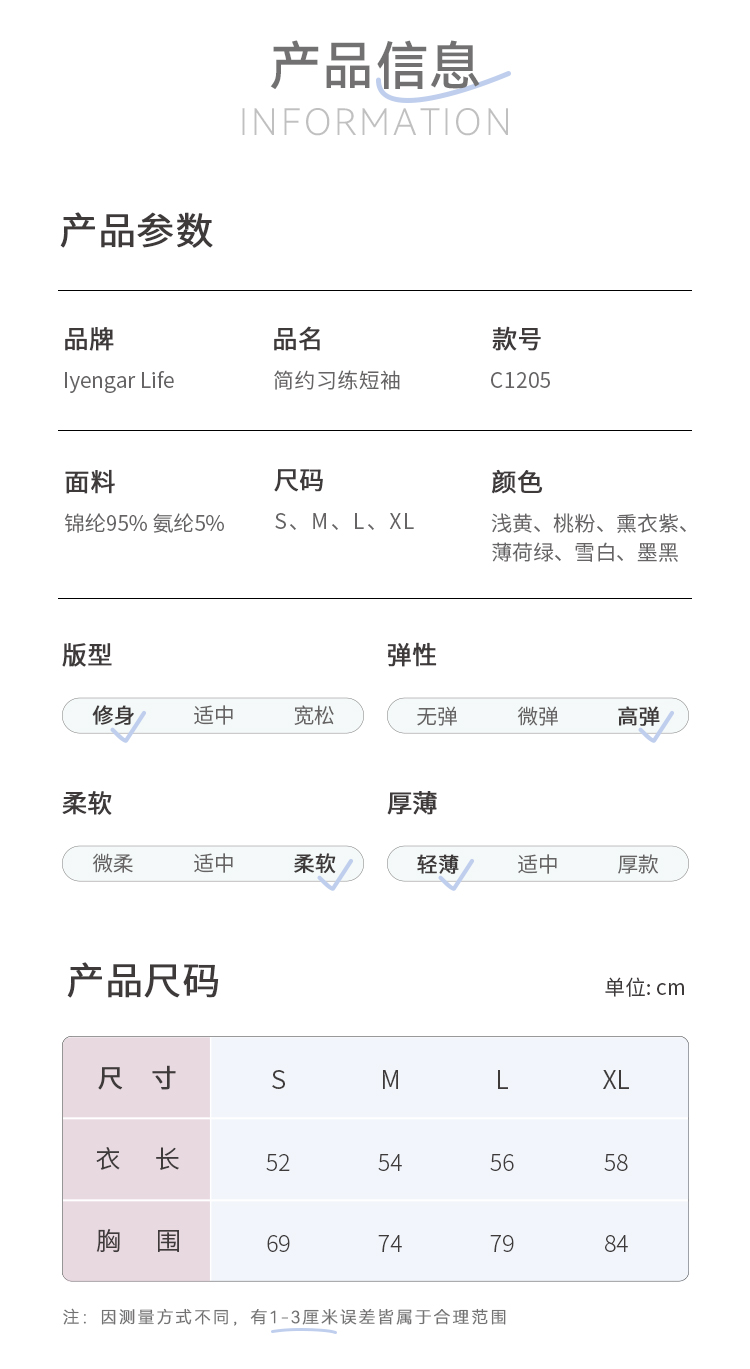 C1205艾扬格 life 简约习练瑜伽短袖T恤 简约大方弹力舒适精致编织提花
