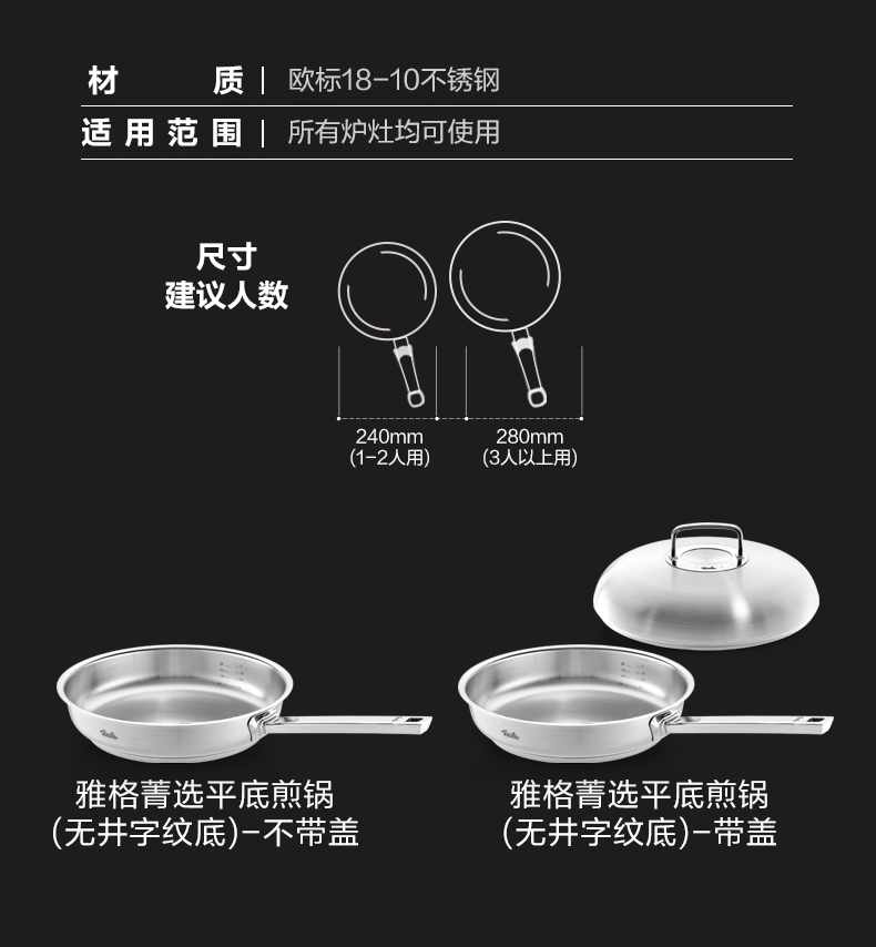 【新品上市】德国进口雅格菁选平底煎锅(无井字纹底)-24/28cm可选