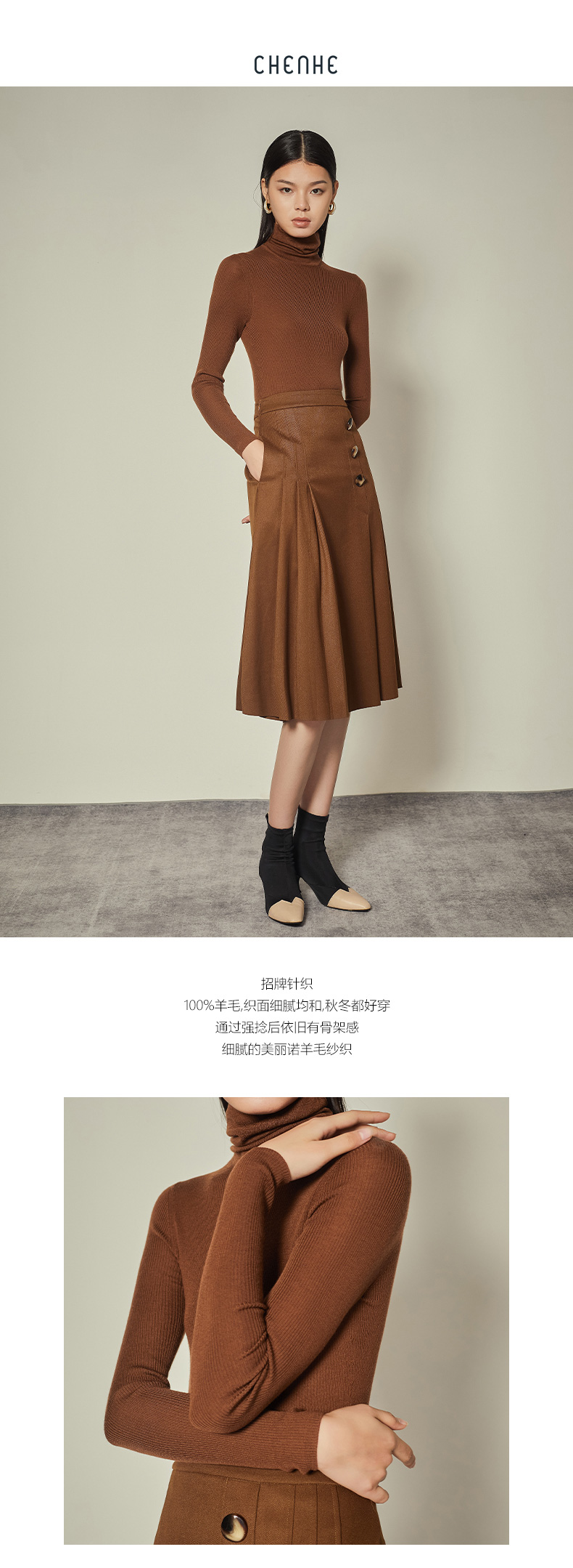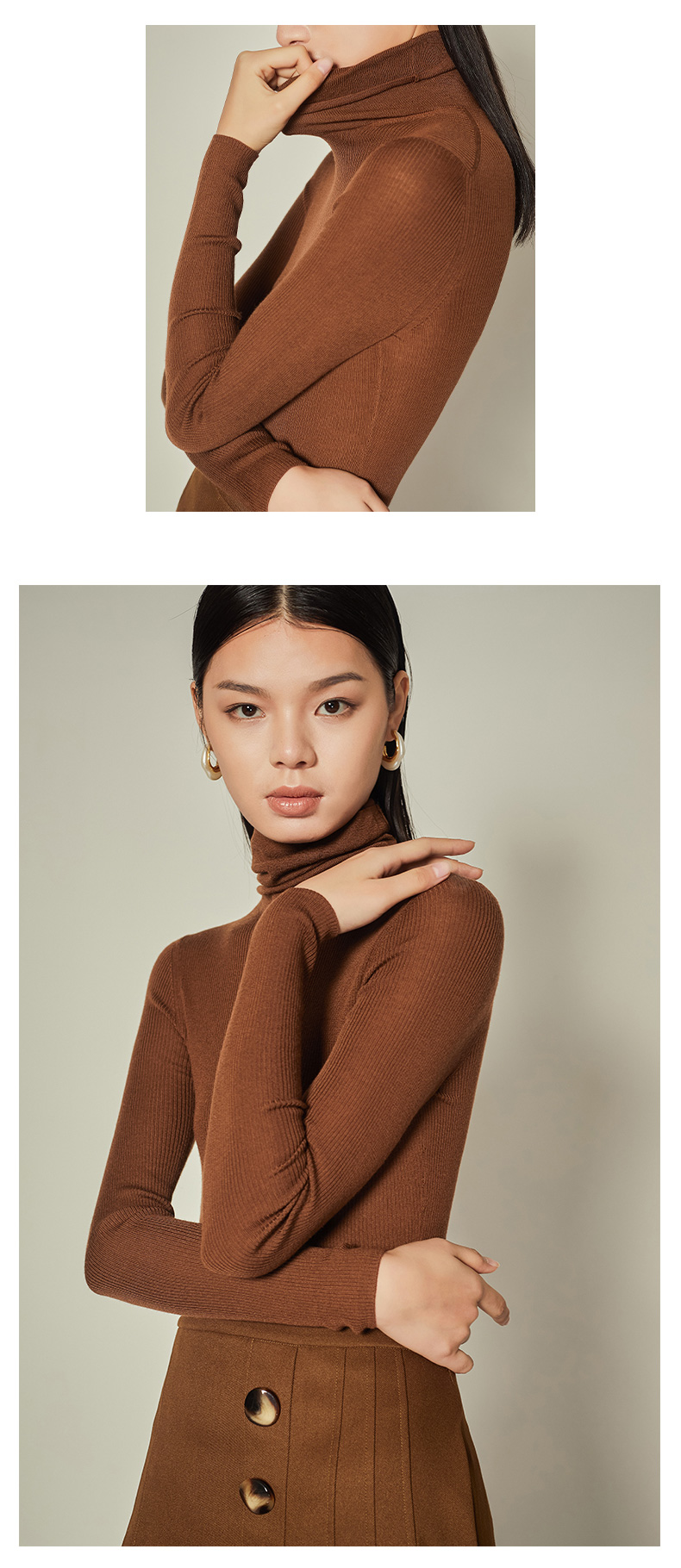 【双11内购】臣禾【100%美丽诺羊毛】【堆堆领羊毛衫】打底衫针织衫百搭T204090410