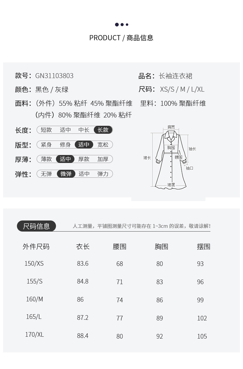 oldcolour欧珂春秋新款两件套休闲连衣裙中长款连衣裙GN31103803