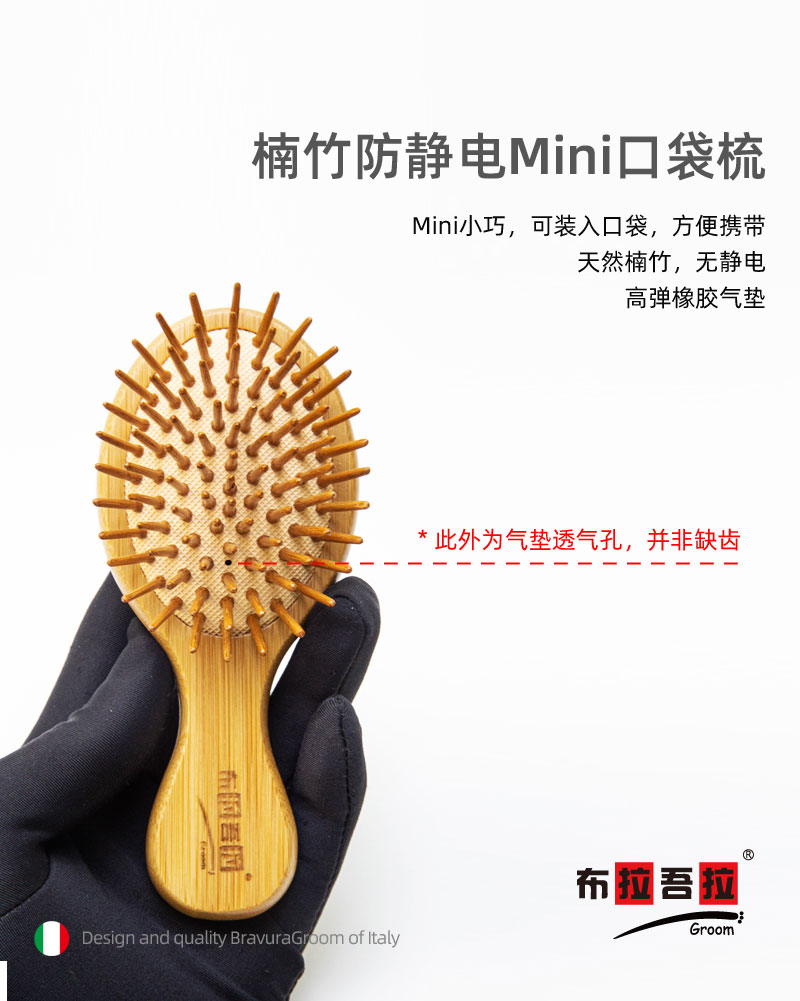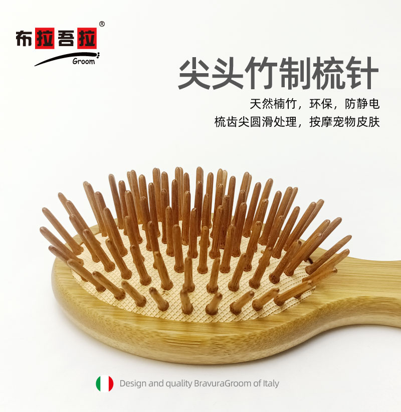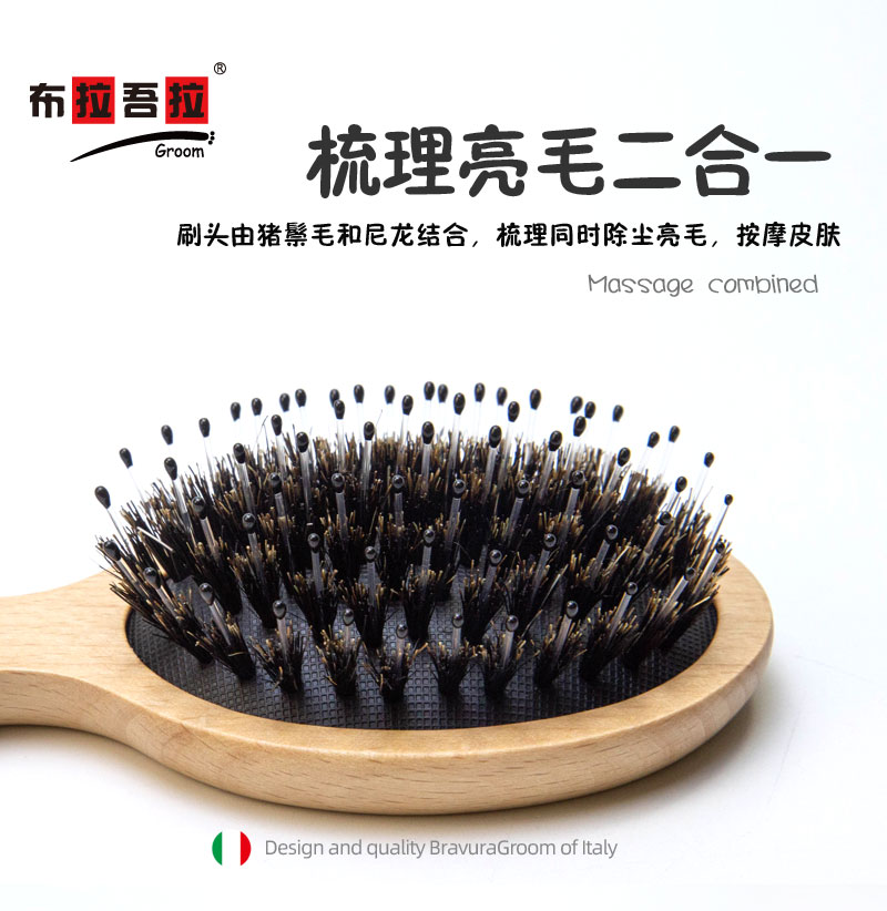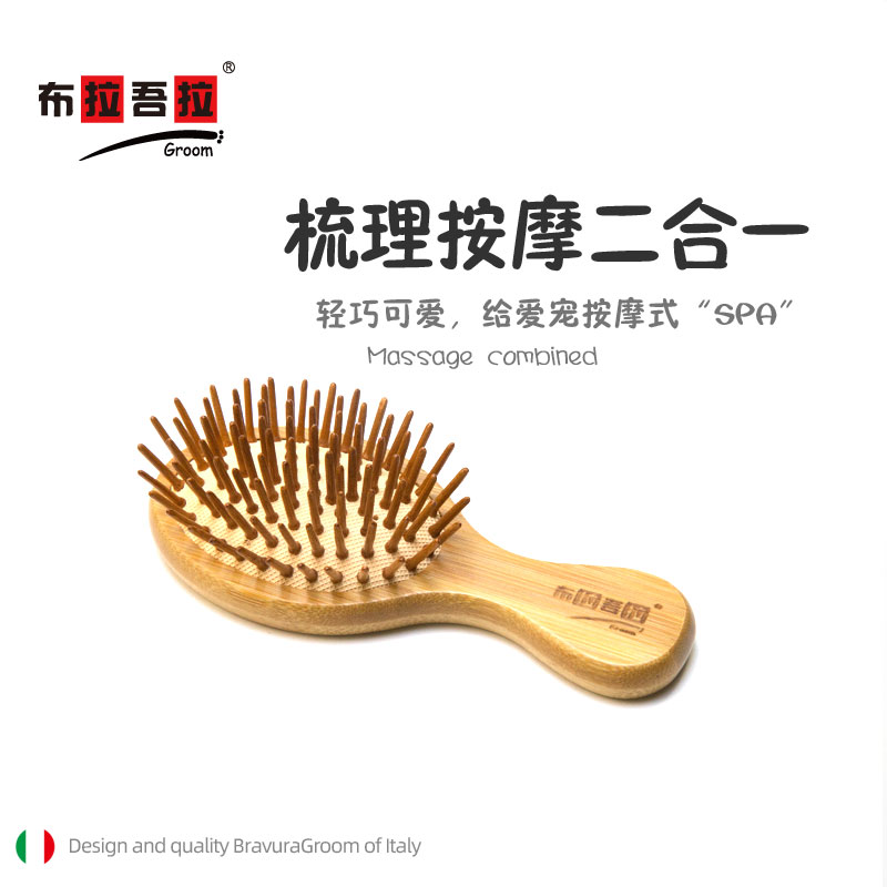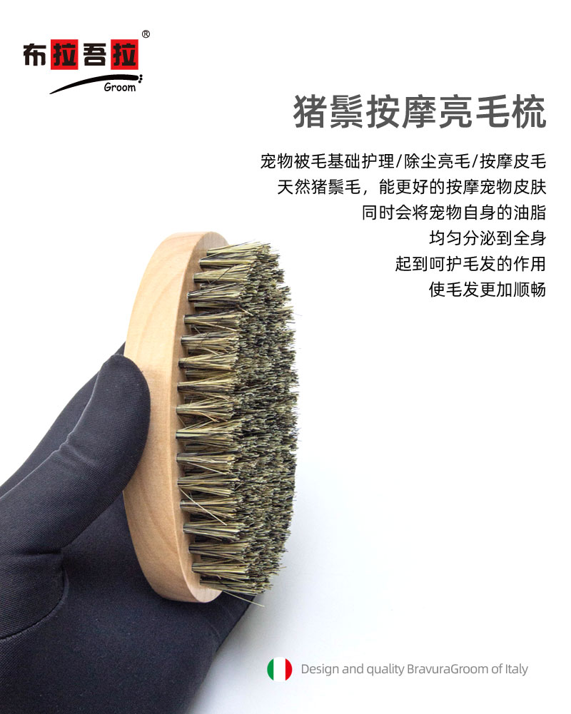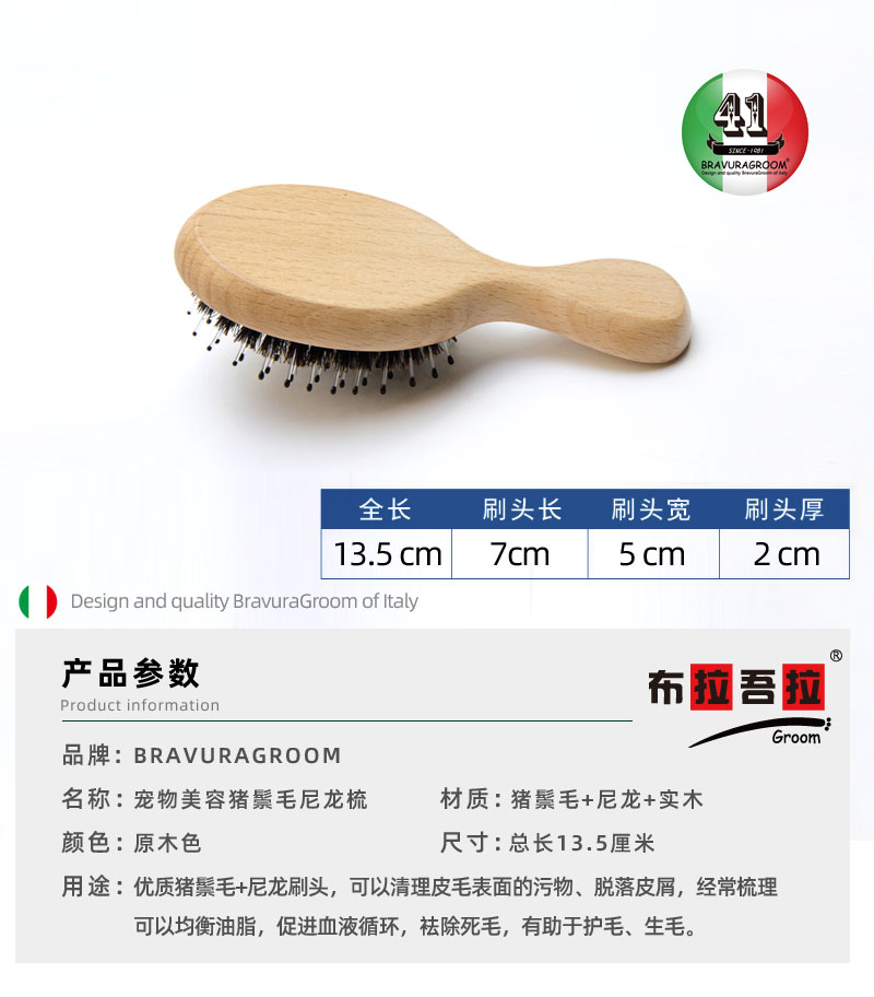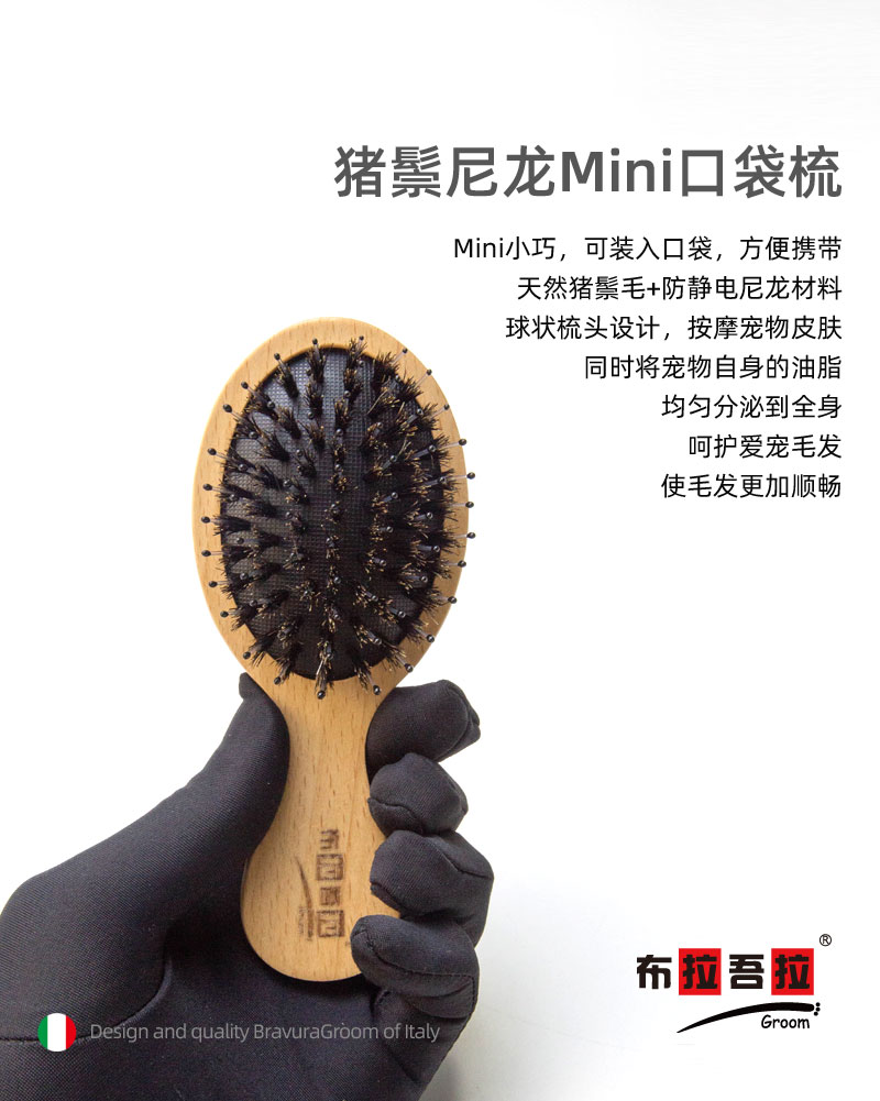 宠物 mini梳 意大利BRAVURAGROOM 猪鬃毛尼龙刷&竹质按摩梳 猪鬃亮毛梳