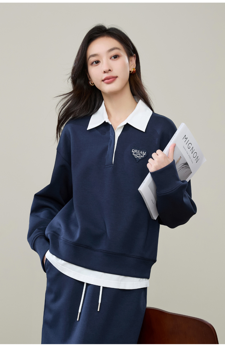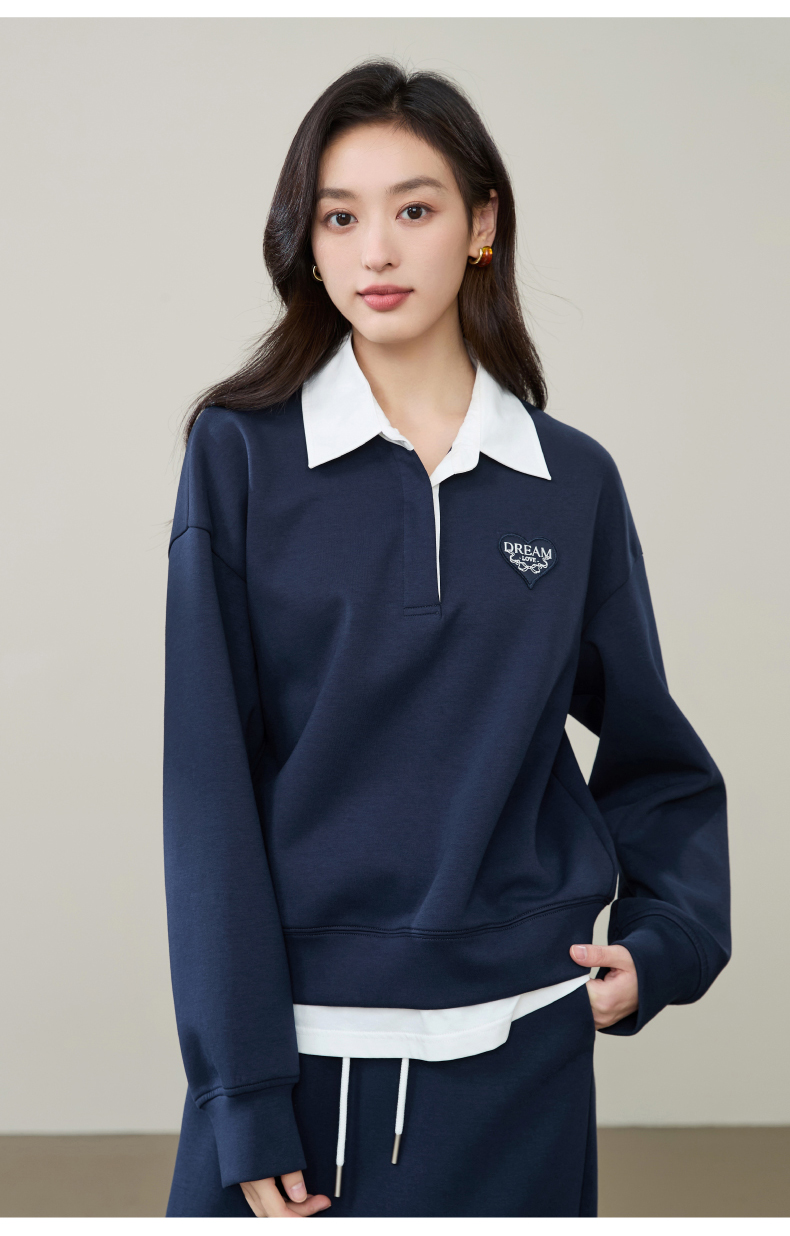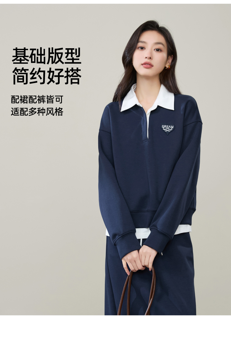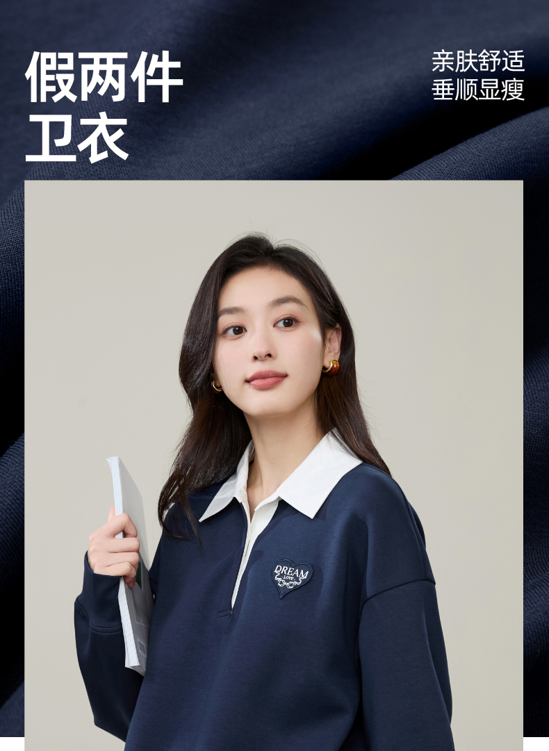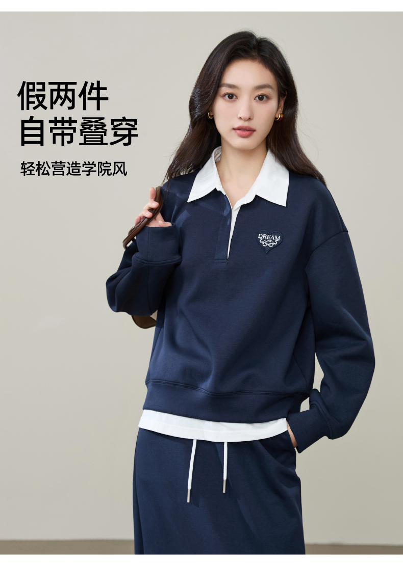 【降价亏本售!假两件-卫衣】逸阳春款美式撞色假两件休闲简约学院风上衣5229