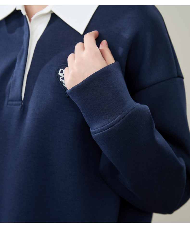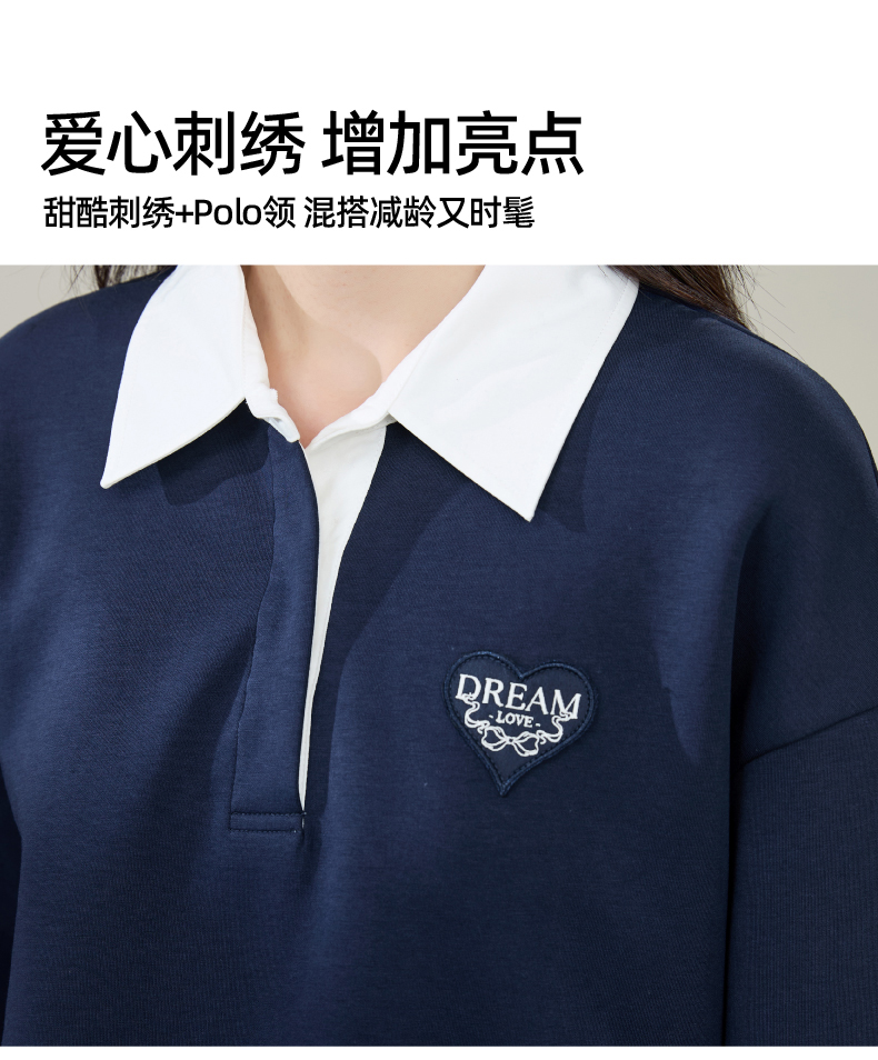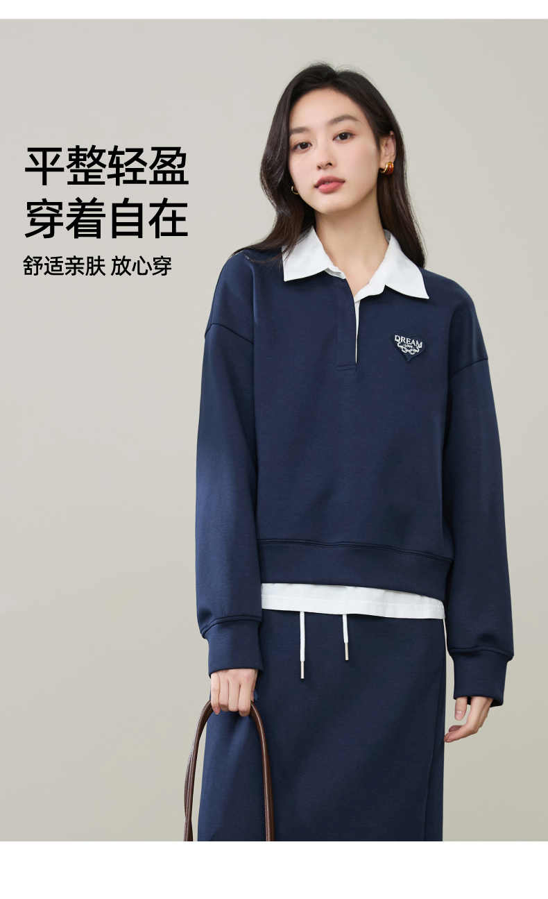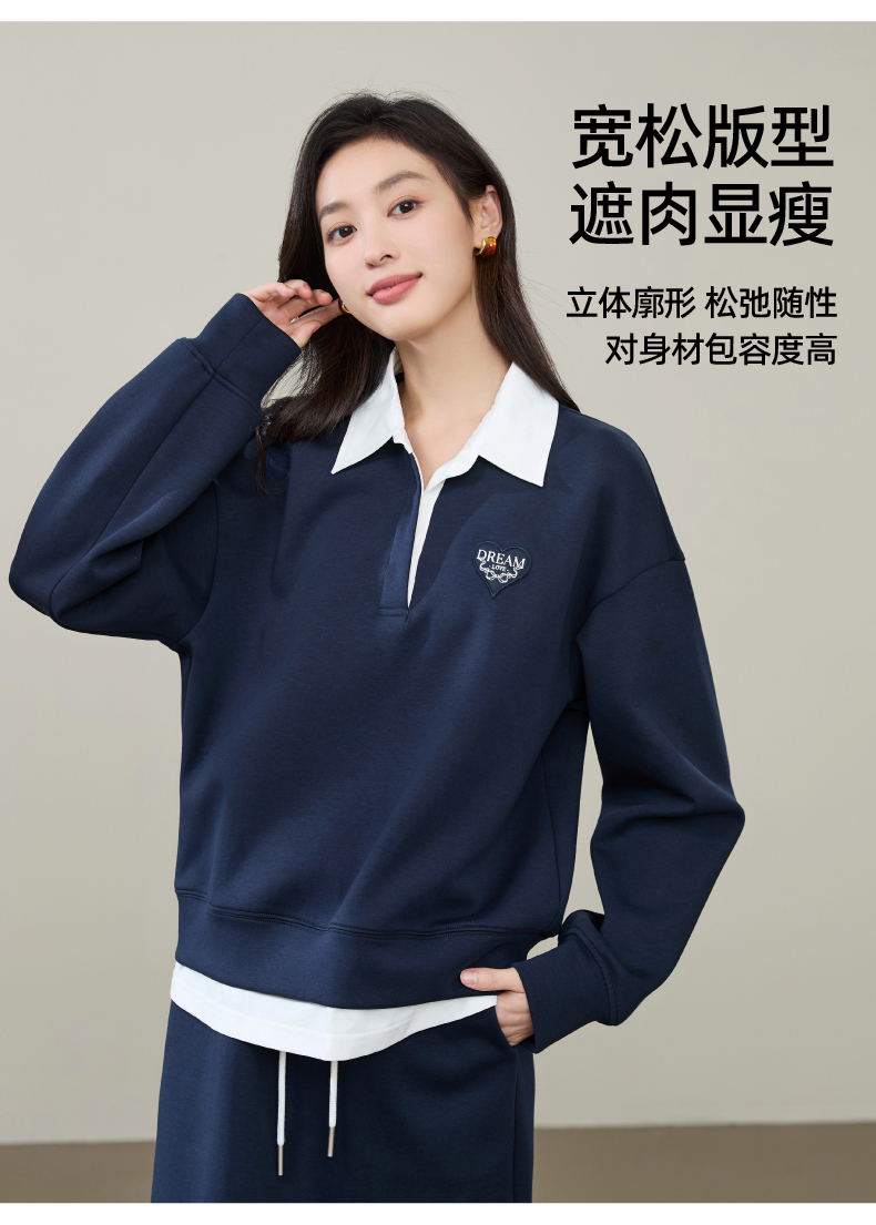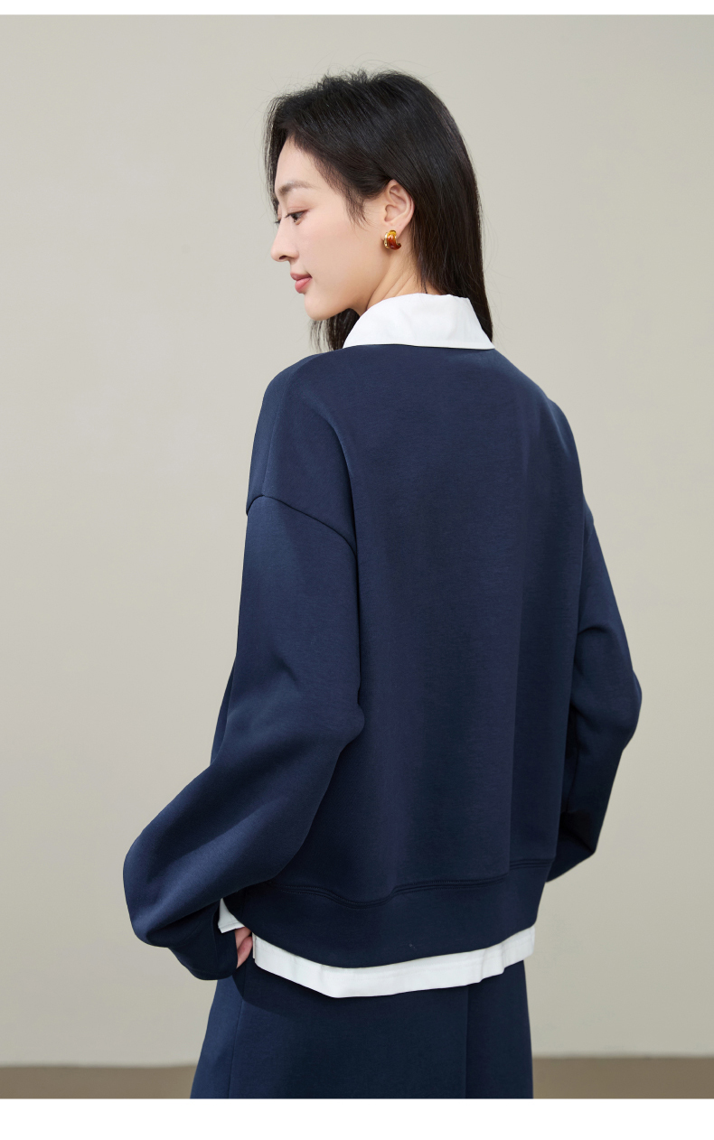 【降价亏本售!假两件-卫衣】逸阳春款美式撞色假两件休闲简约学院风上衣5229