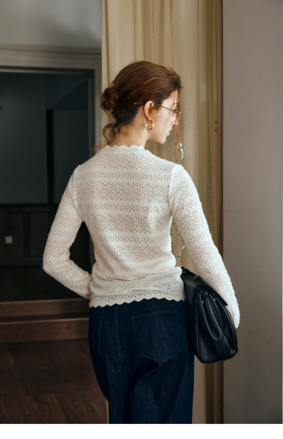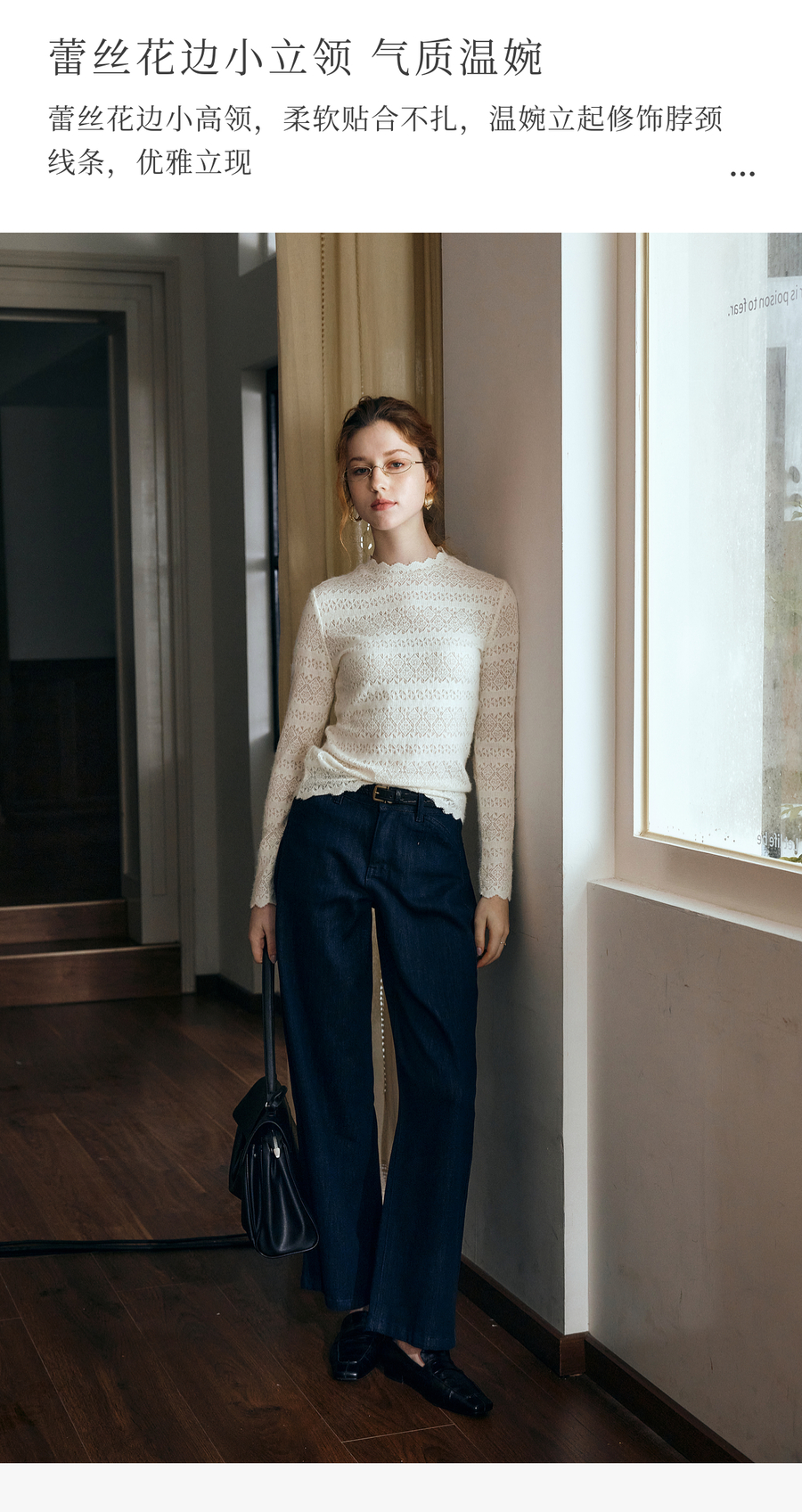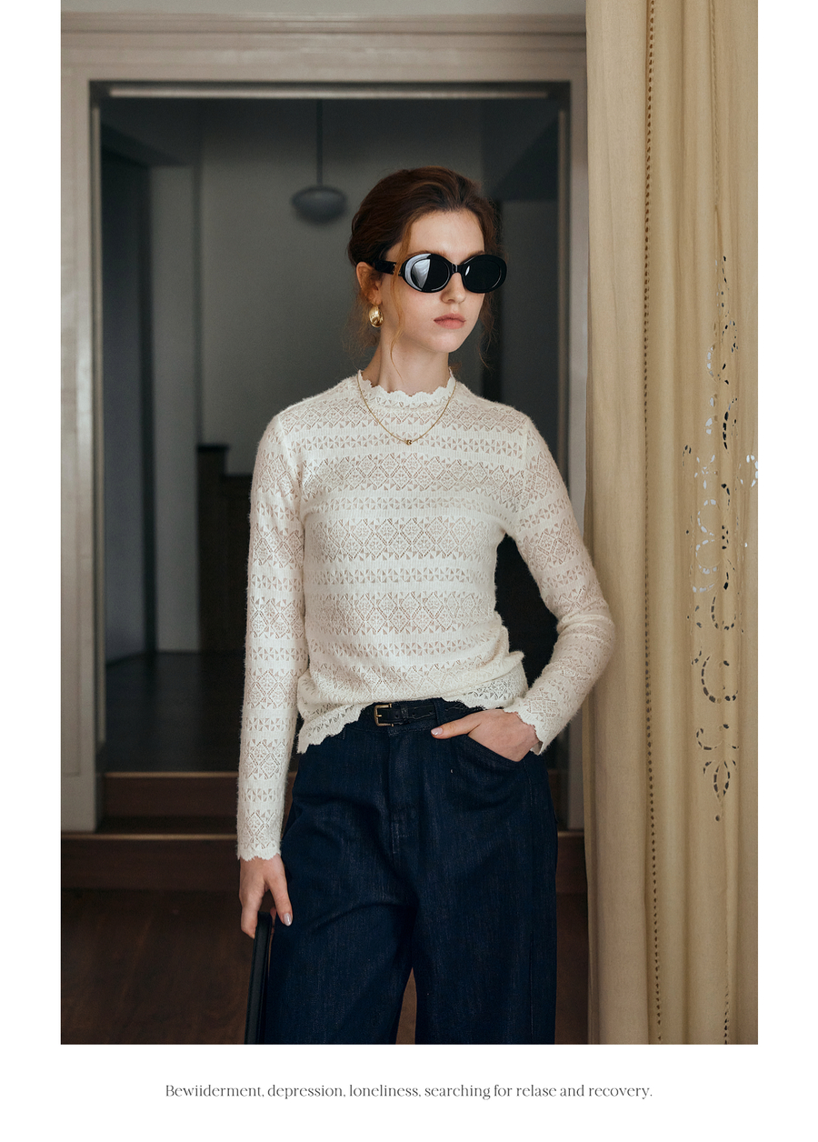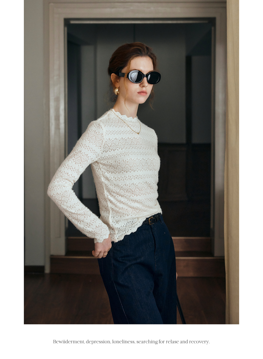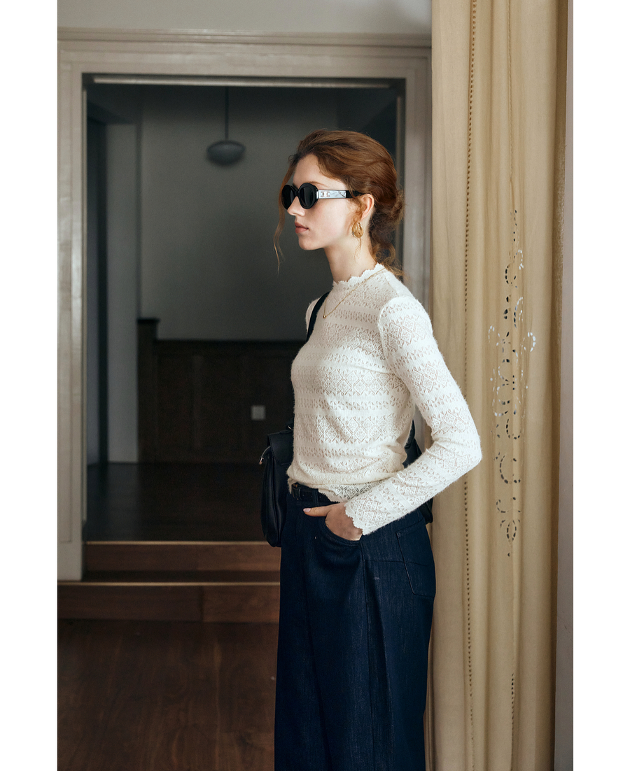 OLrain欧芮儿小高领套头蕾丝打底衫2025秋季新款法式长袖打底上衣