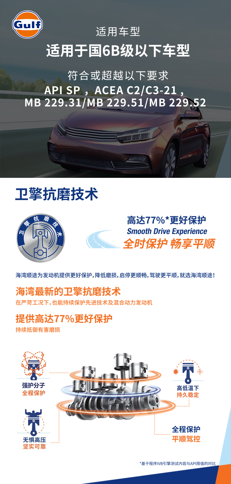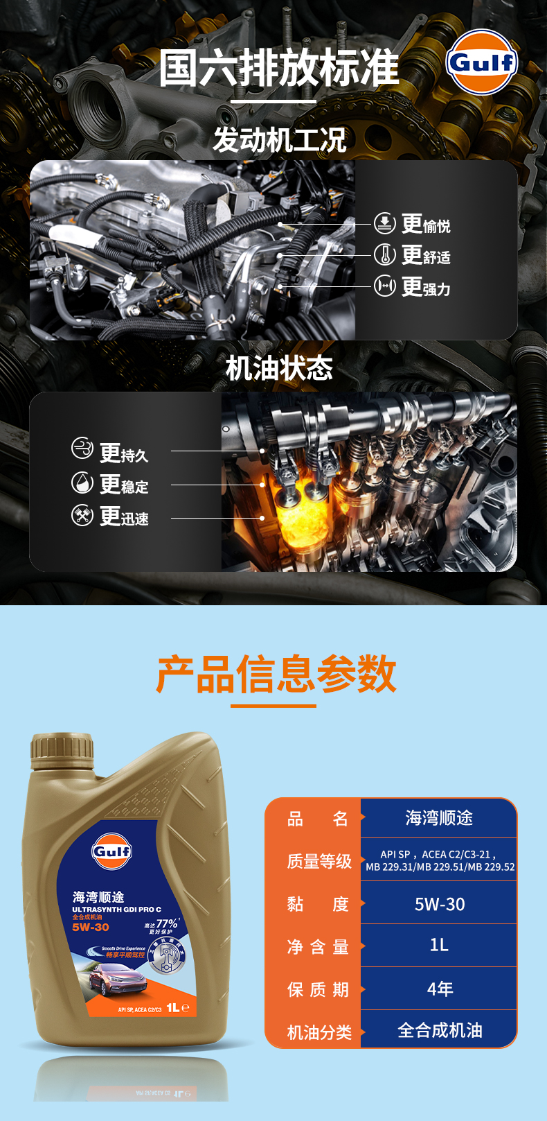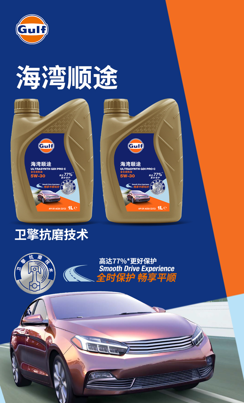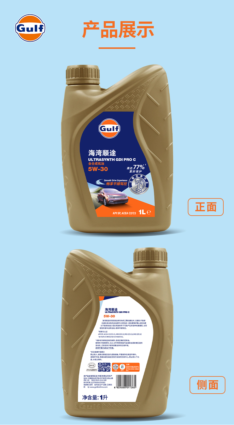 Gulf海湾顺途 5W-30全合成机油 1L发动机润滑油畅享平顺API SP
