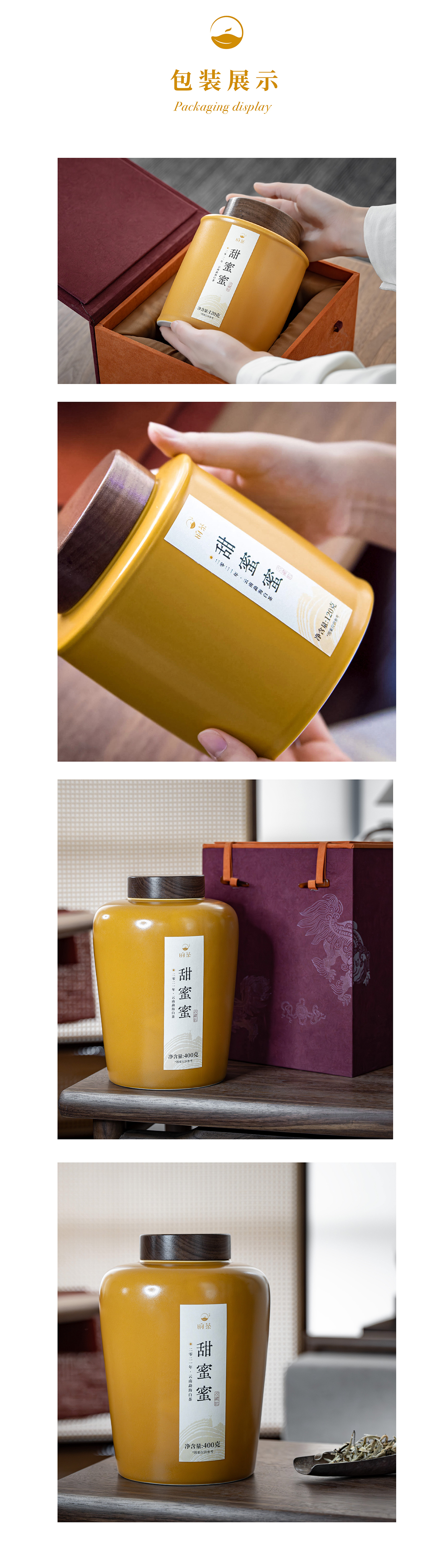 【昀茶·白茶系列】限定包装 · 甜蜜蜜 · 2021年云南勐海白毫银针 · 明前头采单芽 · 根根肥壮 · 满披白毫 · 4年陈茶 · 茶汤醇厚甘甜 (120g&400g/景德镇汝黄瓷收藏装)
