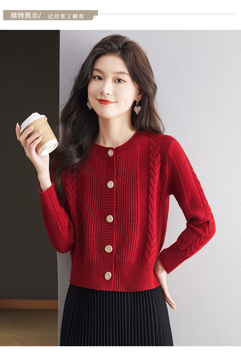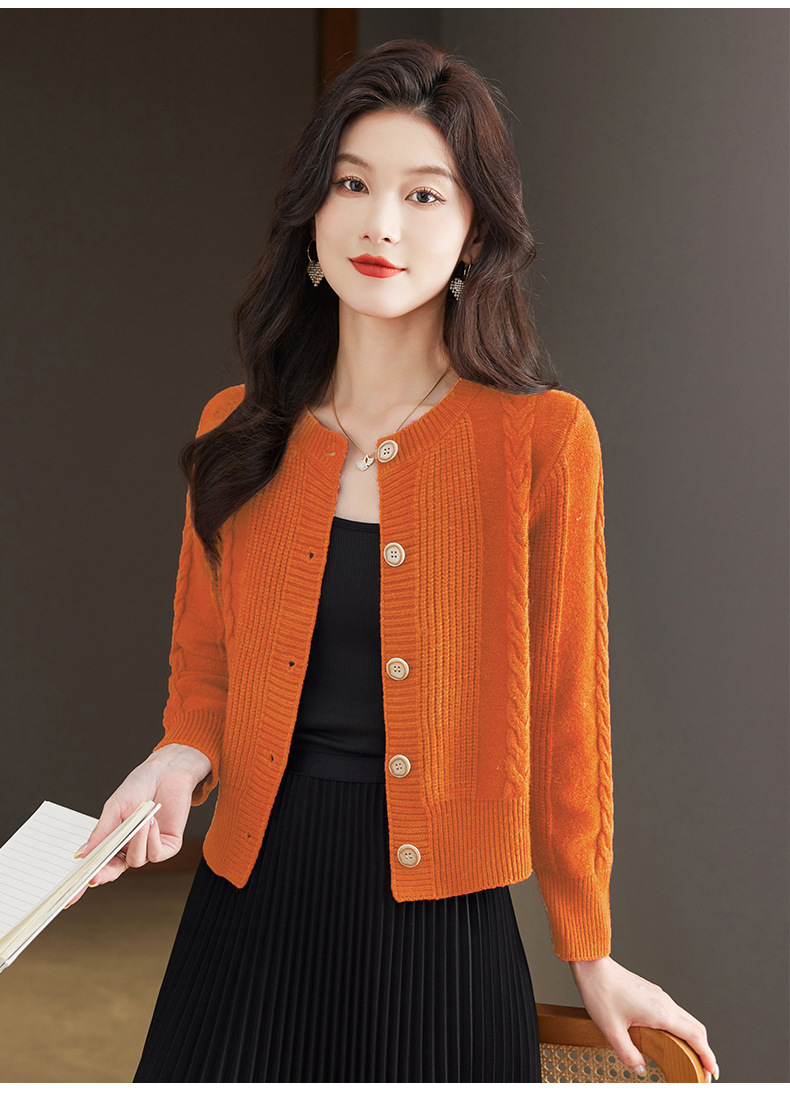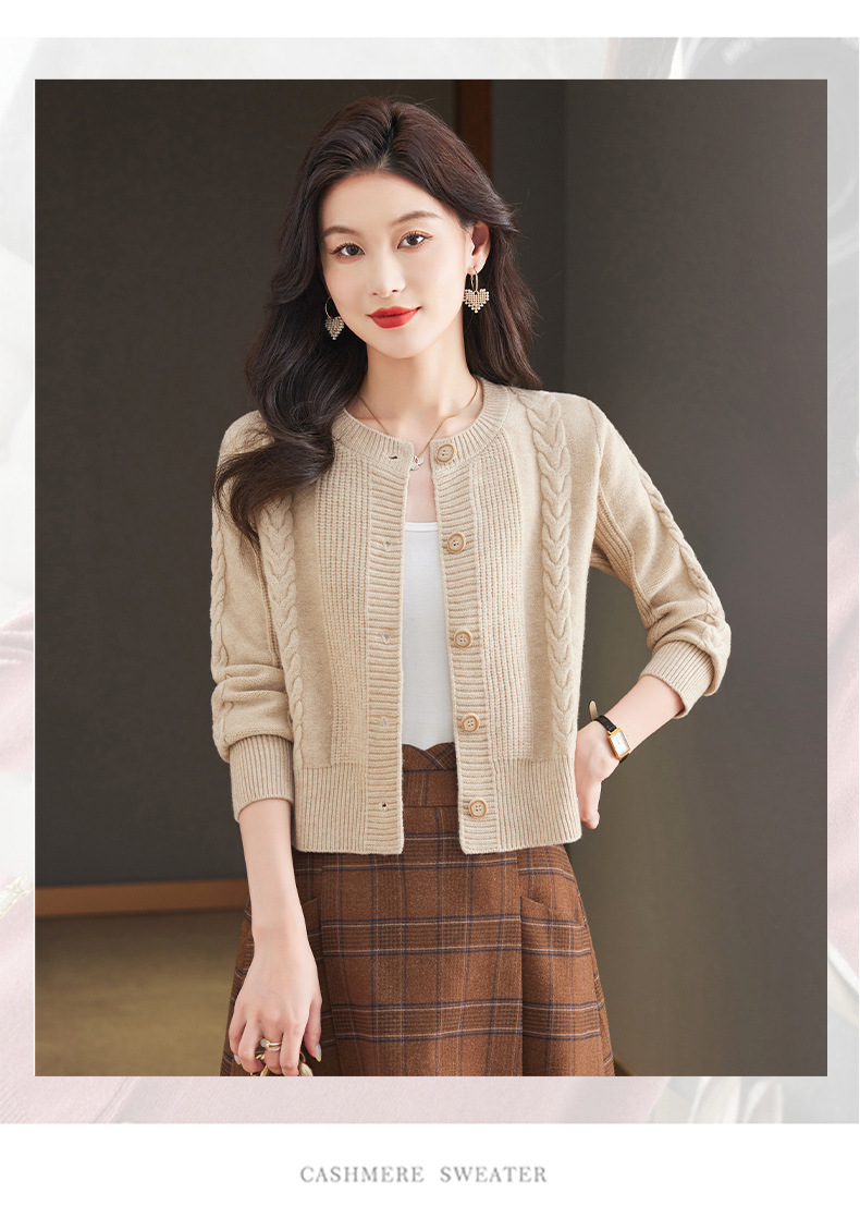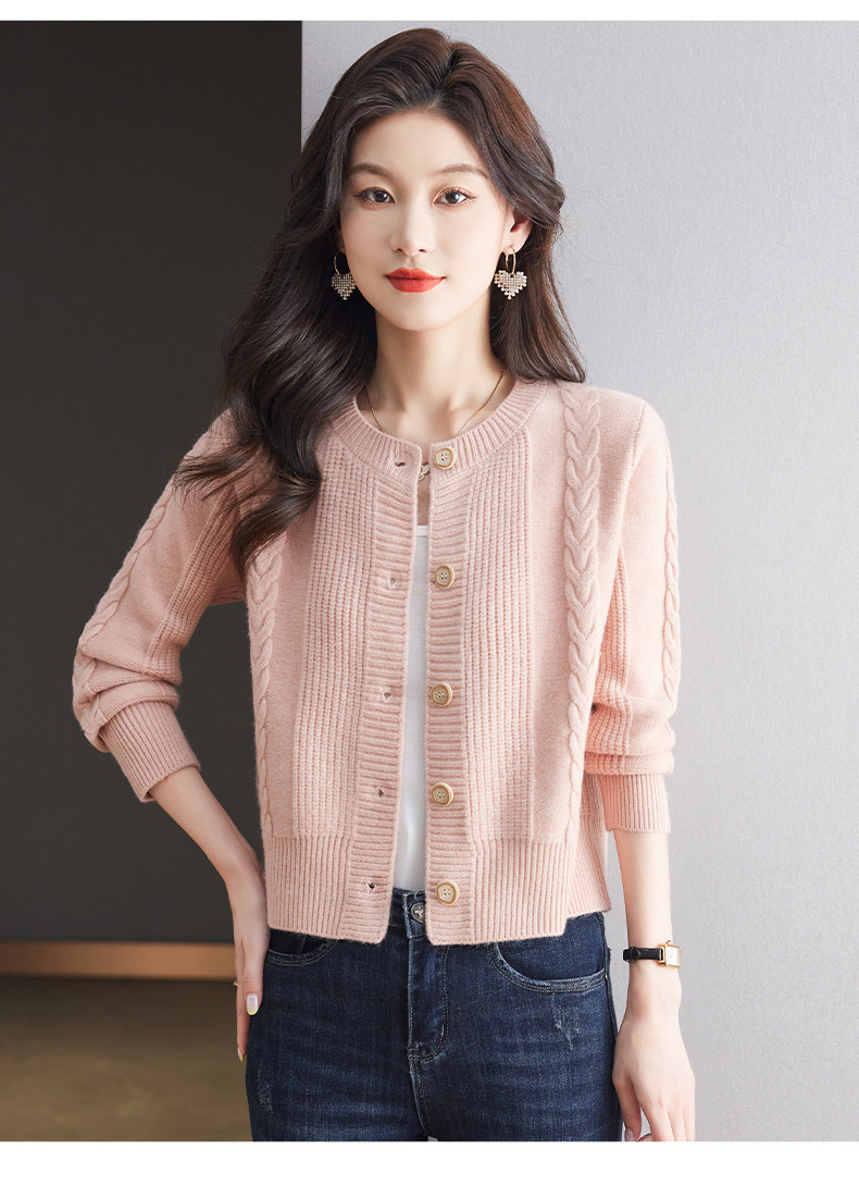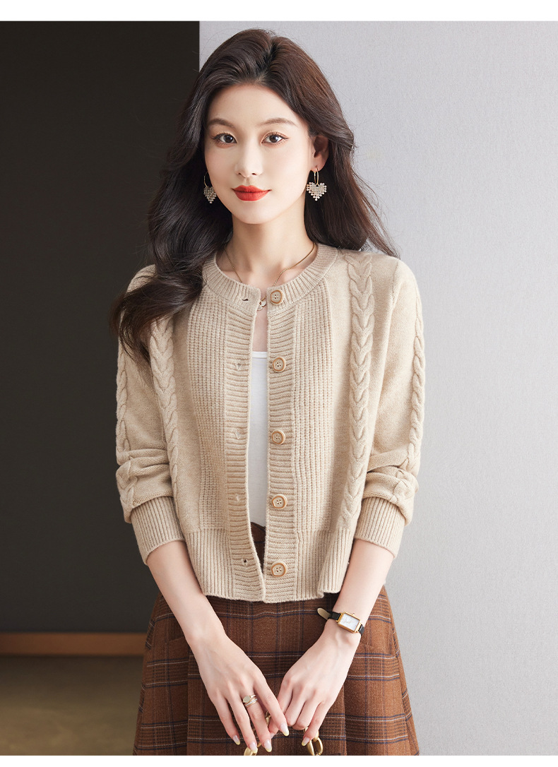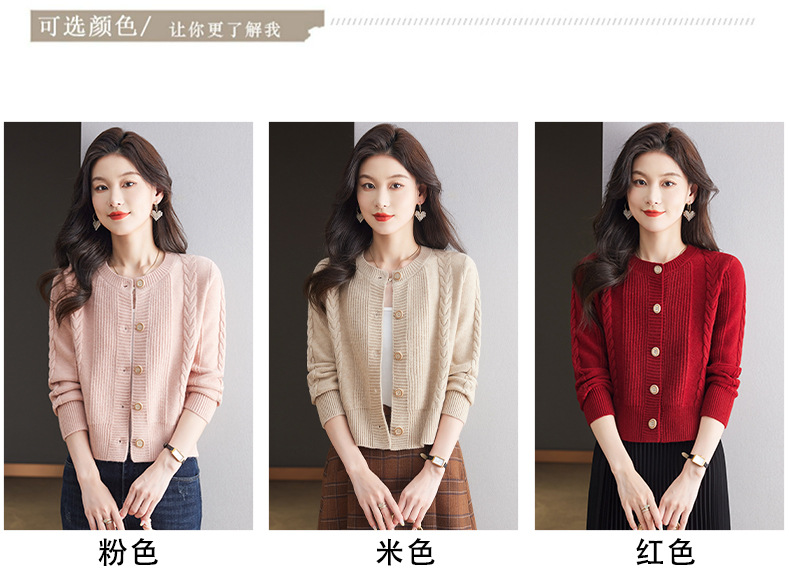 CC-9-6911针织开衫外套女秋装2024新款宽松小个子外搭短款上衣圆领羊毛毛衣
