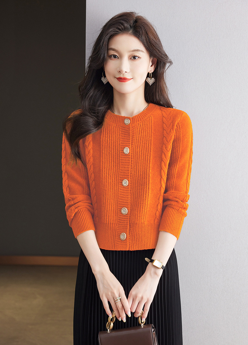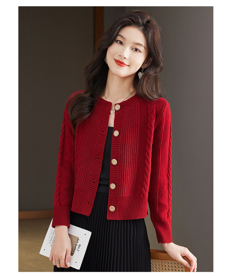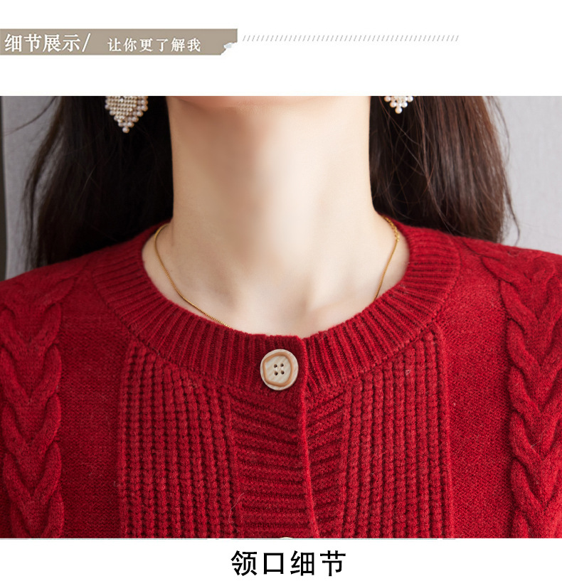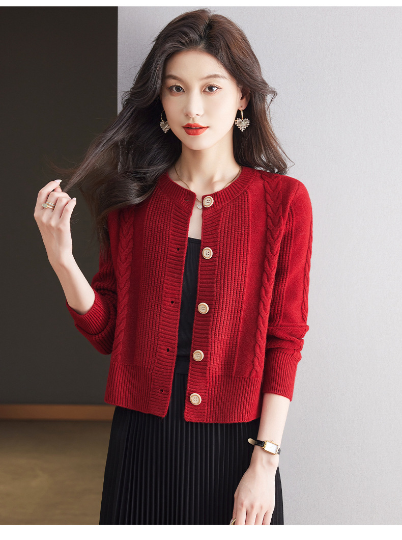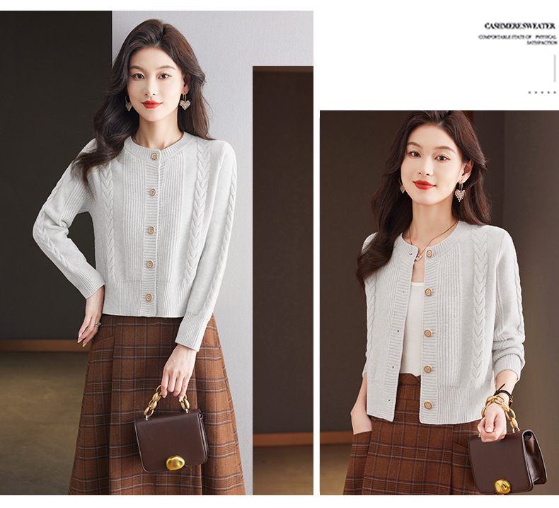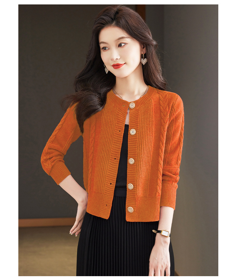 CC-9-6911针织开衫外套女秋装2024新款宽松小个子外搭短款上衣圆领羊毛毛衣