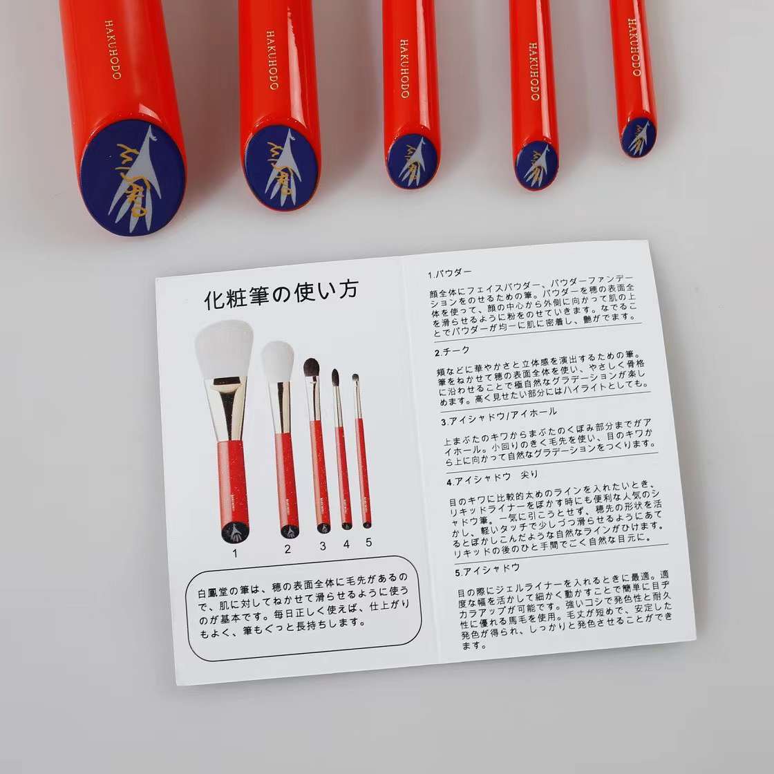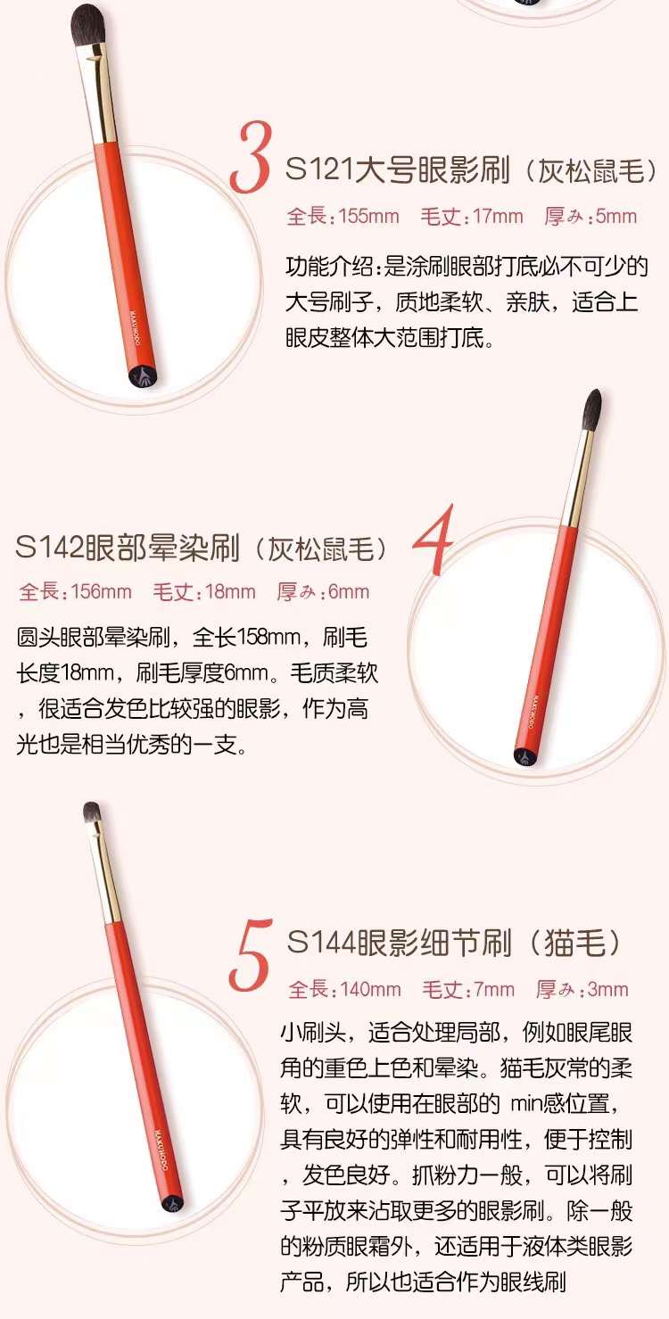 专业美妆工具 白家高端套装S系列朱轴眼影散粉红五件化妆刷套刷