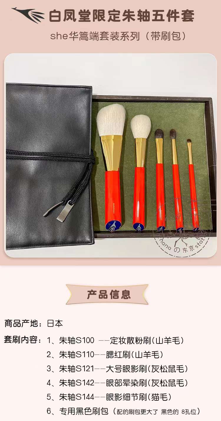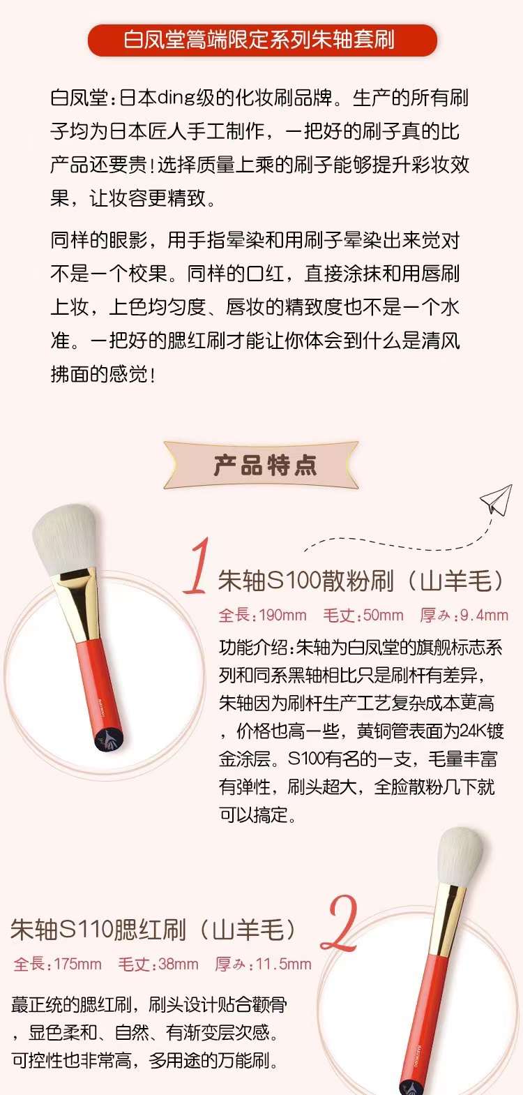 价值2780 化妆刷中的爱马仕!白家高端套装S系列朱轴眼影散粉红五件化妆刷套刷 专业美妆工具 定妆散粉刷+腮红刷+大号眼影刷+眼部晕染刷+眼影细节刷 高端舒适 预售