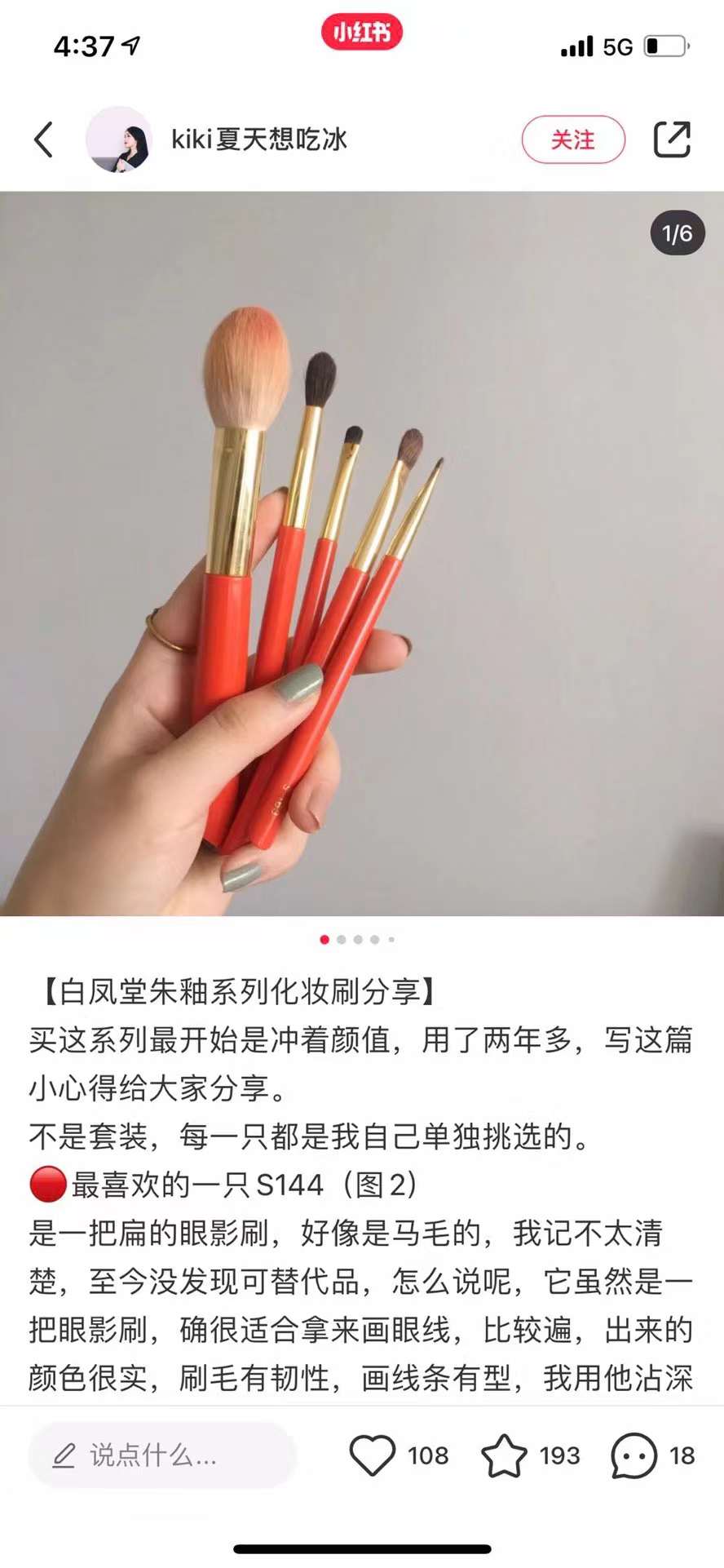 化妆刷中的爱马仕 各路明星推介 央视主持人李思思 TFBOYS王源 青春偶像关晓彤 都被拍到在使用我们白凤堂的朱釉系列