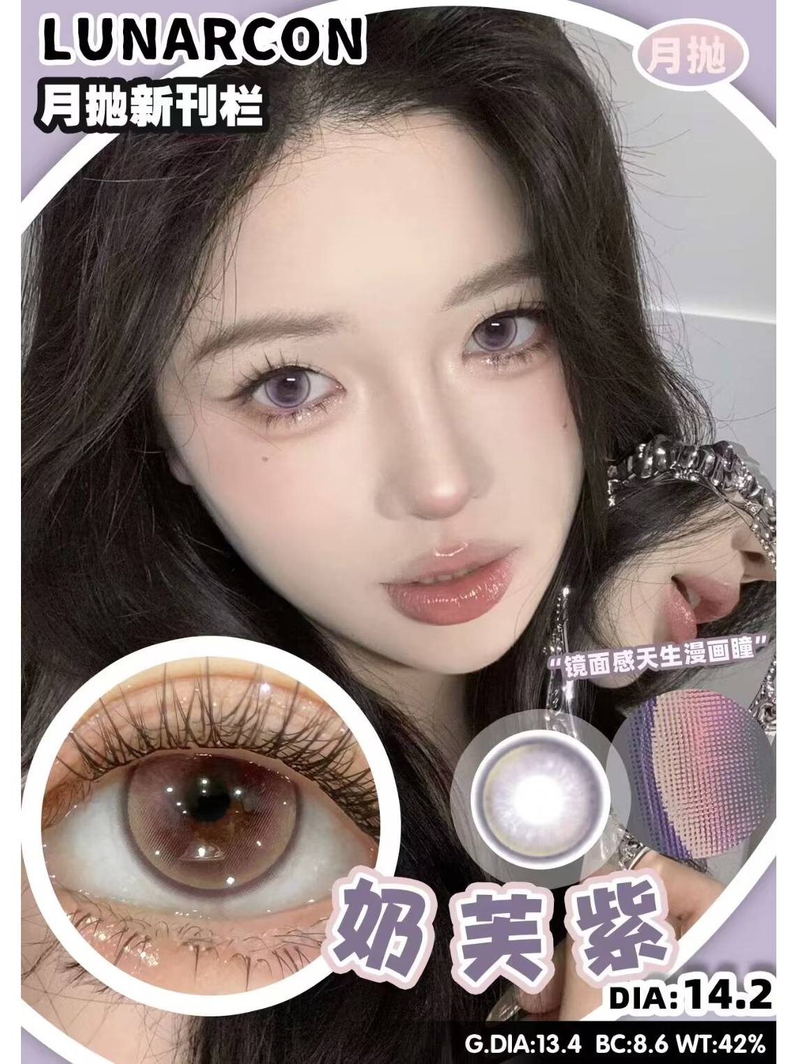 LUNARCON 茶茶小棕&茶茶小灰&奶芙蓝&奶芙紫 月抛 直径14.2mm 含水42%